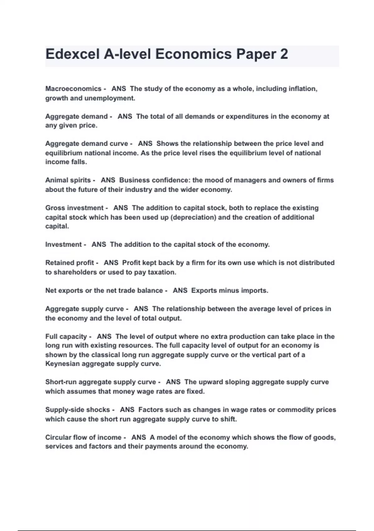 - Edexcel A-level Economics Paper 2