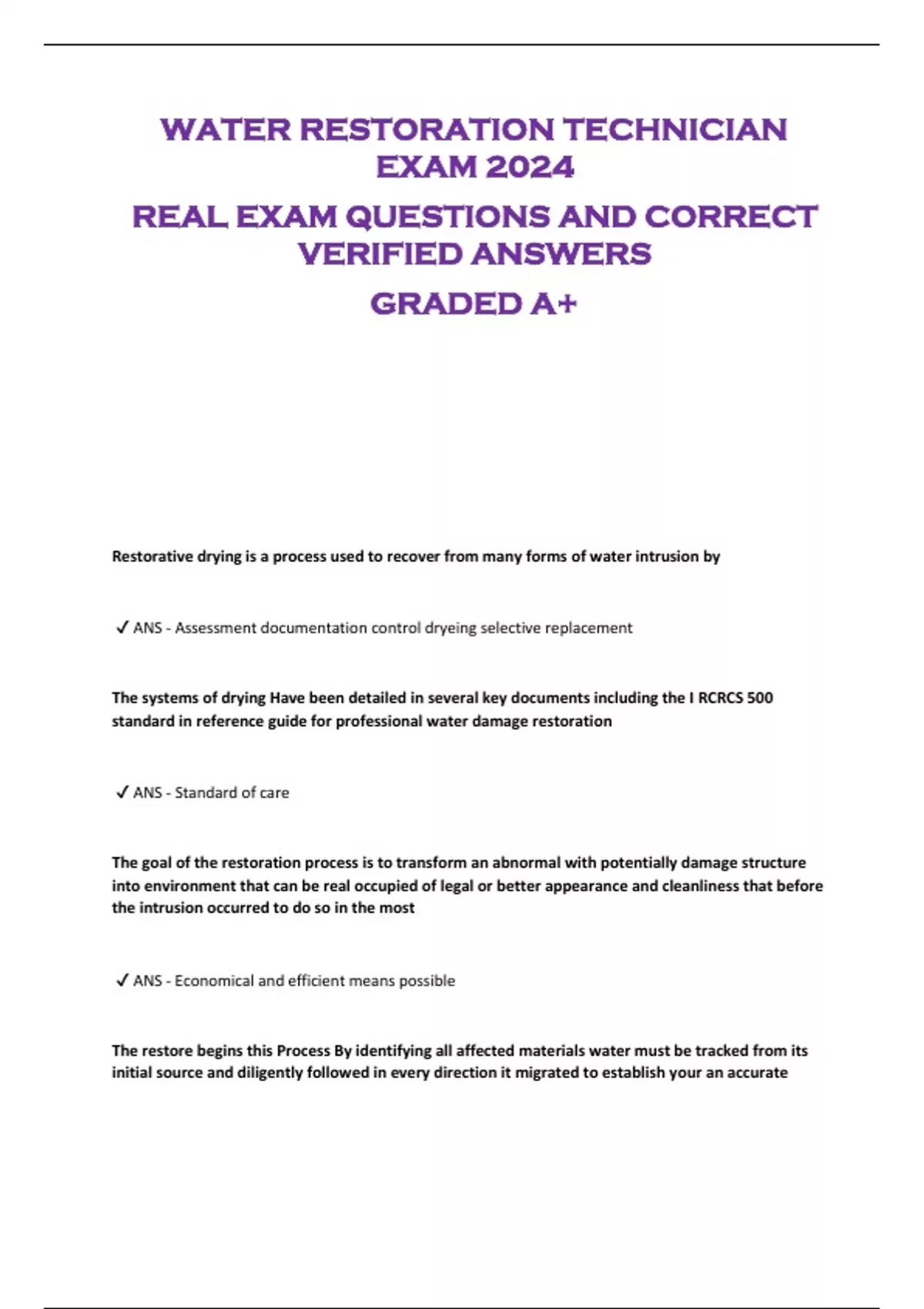 WATER RESTORATION TECHNICIAN EXAM 2024 REAL EXAM QUESTIONS AND CORRECT VERIFIED ANSWERS GRADED A+