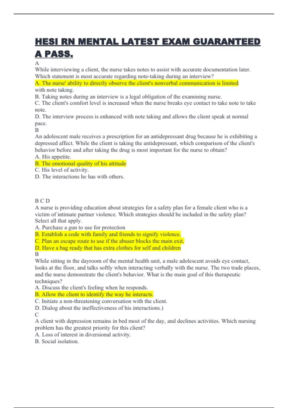 HESI RN MENTAL LATEST EXAM GUARANTEED A PASS.