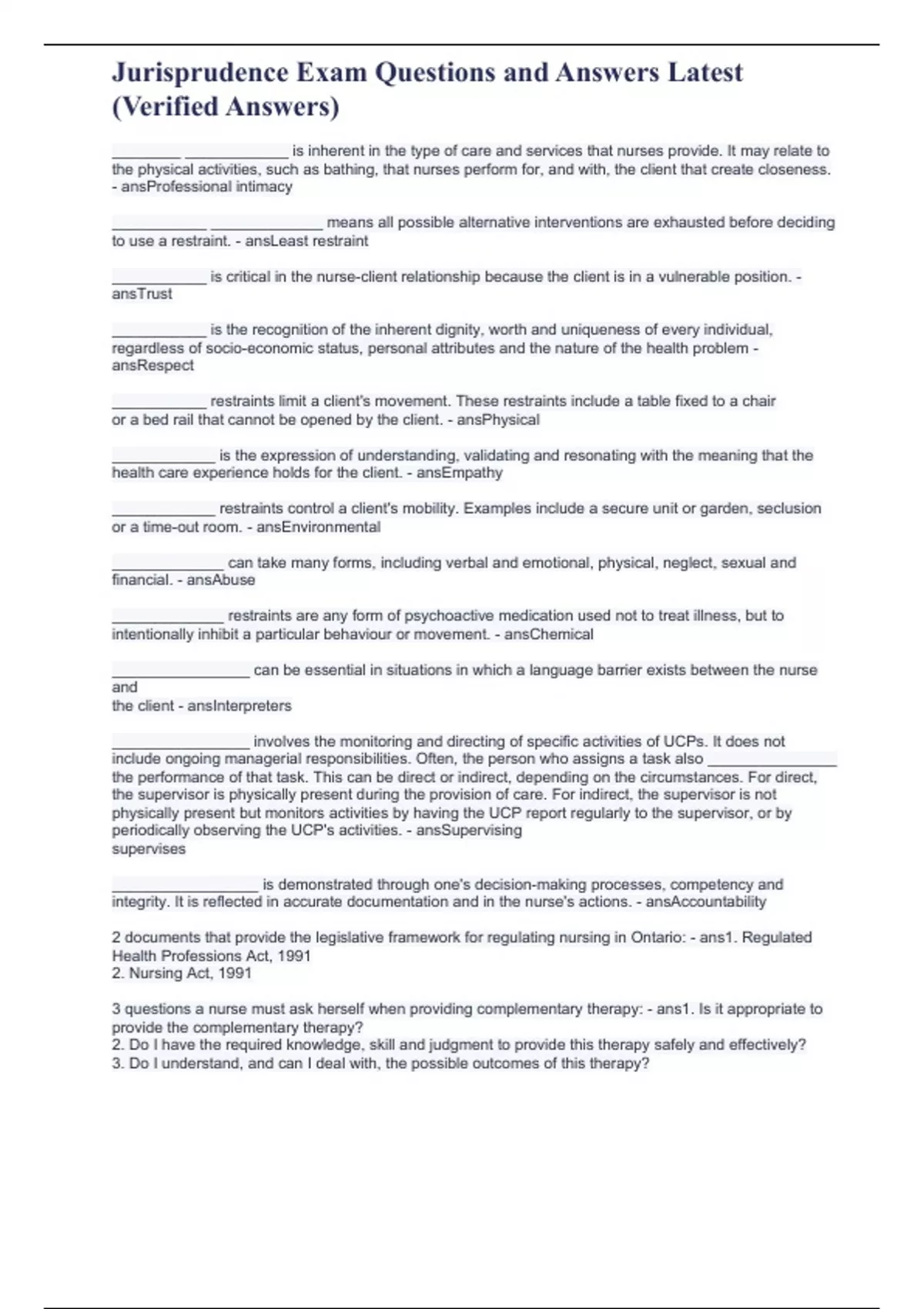 Jurisprudence Exam Questions and Answers Latest (Verified Answers)