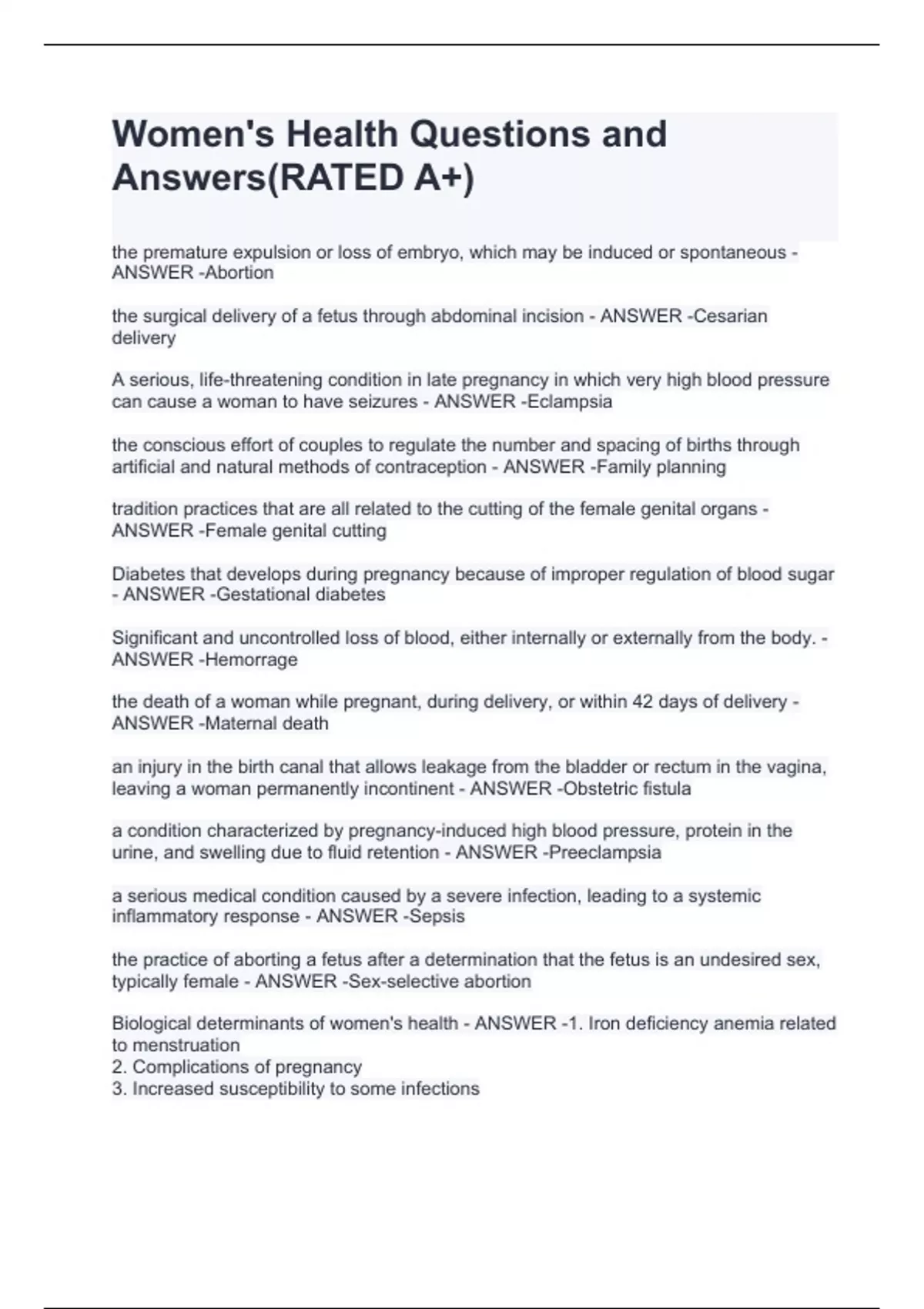 Women's Health Questions and Answers(RATED A+)