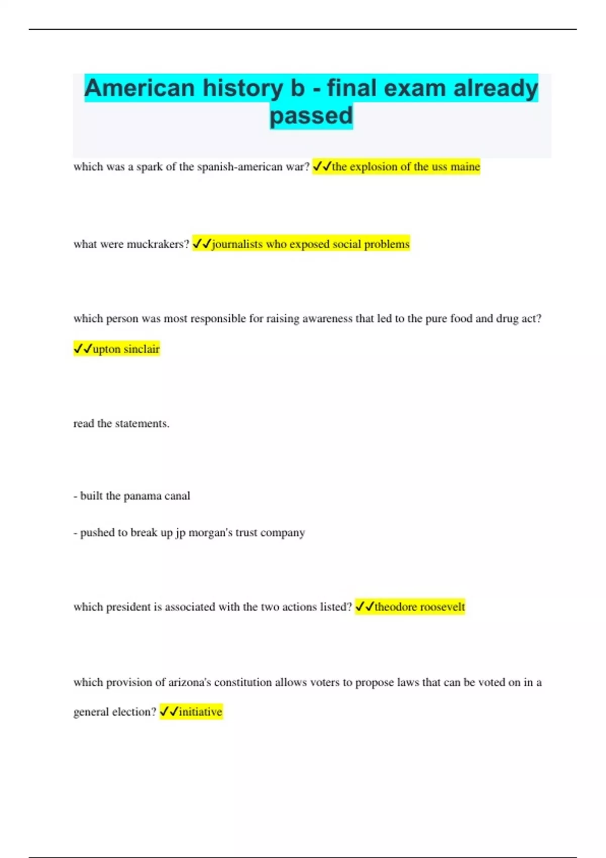 American history b - final exam already passed