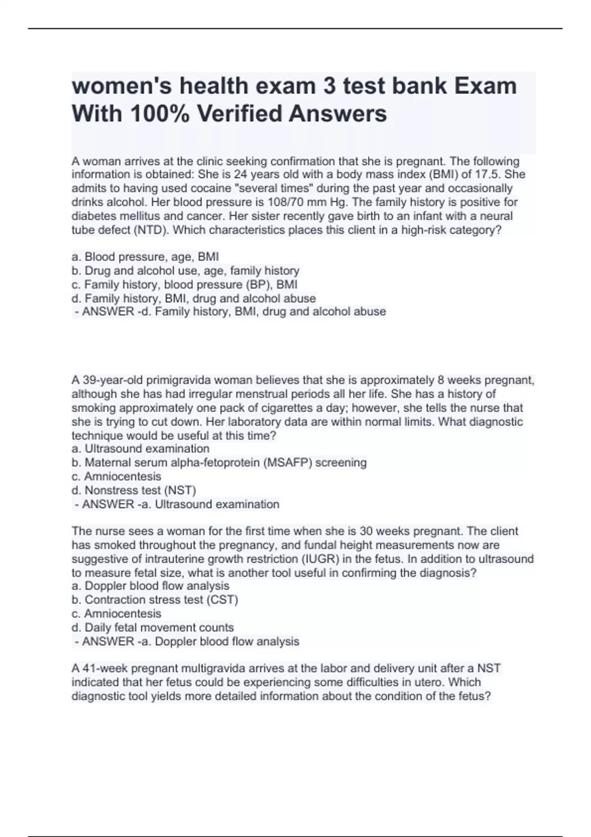 A woman arrives at the clinic seeking confirmation that she is pregnant. The following