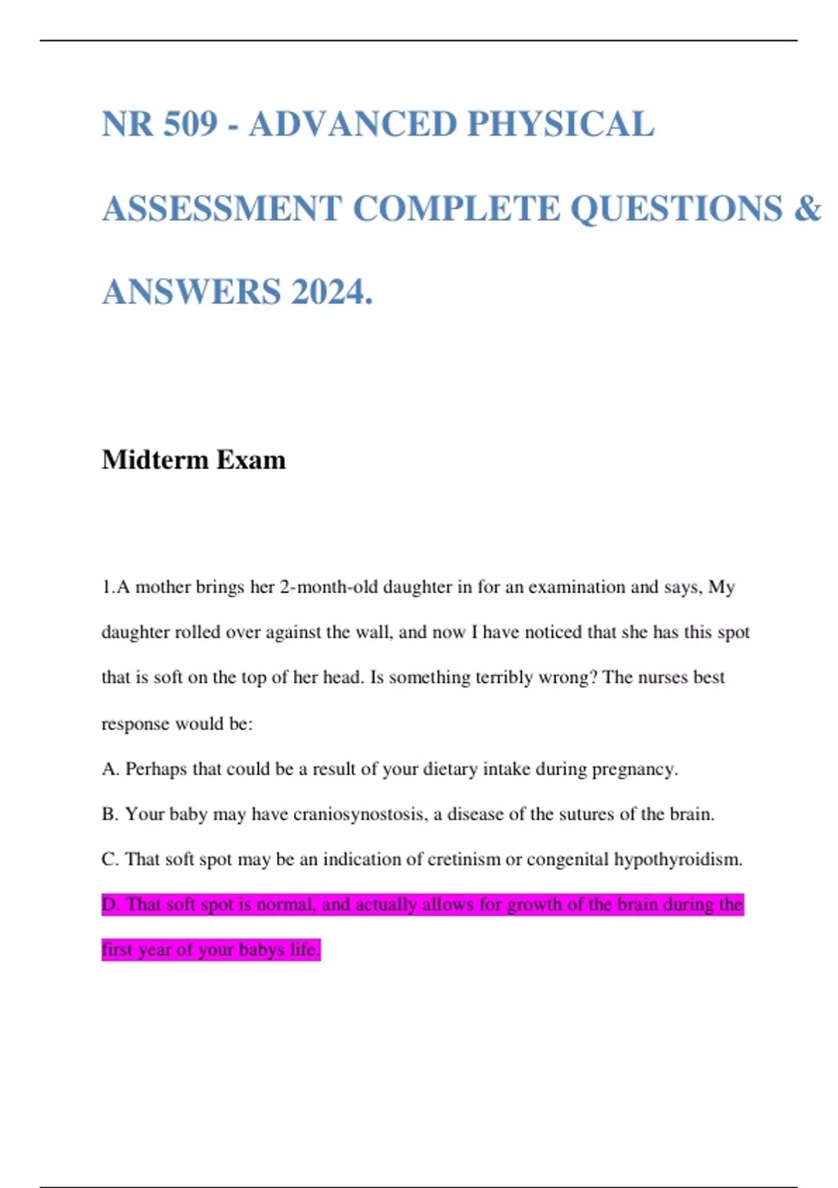 NR 509 - ADVANCED PHYSICAL ASSESSMENT COMPLETE QUESTIONS & ANSWERS 2024.
