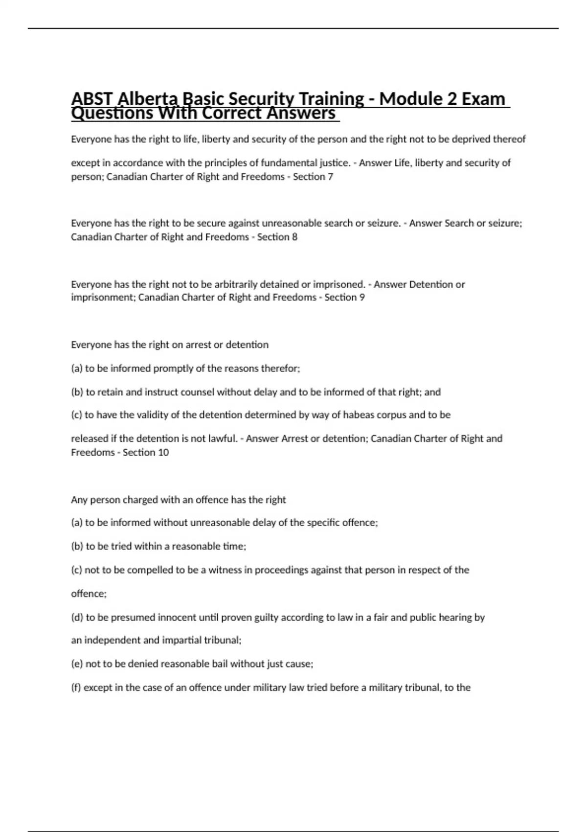 ABST Alberta Basic Security Training - Module 2 Exam Questions With Correct Answers