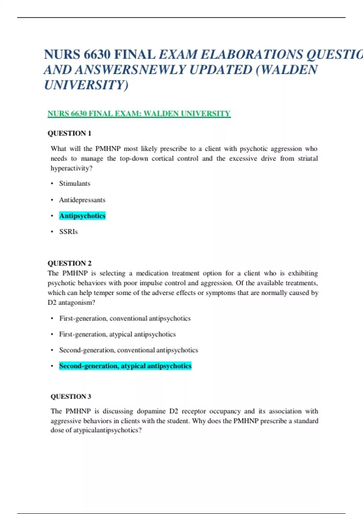 NURS 6630 FINAL EXAM ELABORATIONS QUESTIONS AND ANSWERS NEWLY UPDATED (WALDEN UNIVERSITY)