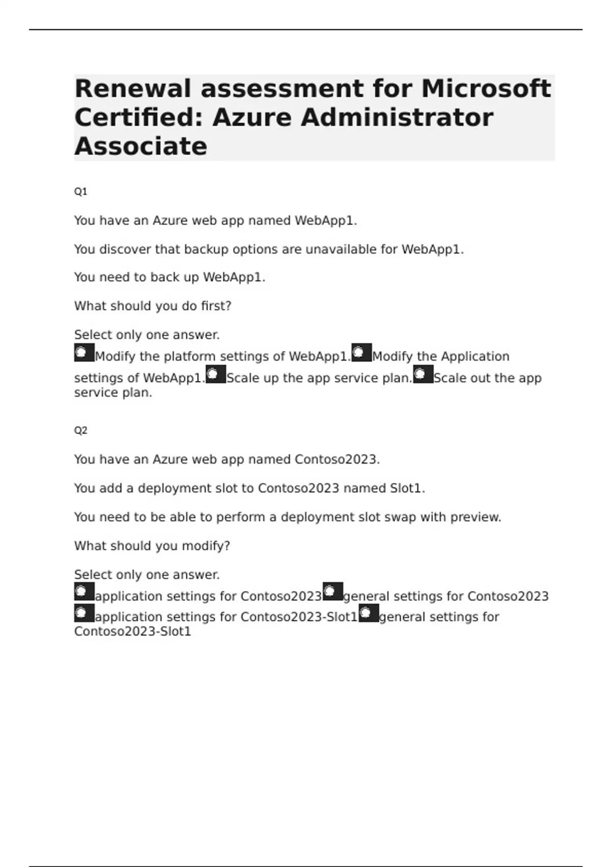 Renewal assessment for Microsoft Certified: Azure Administrator Associate
