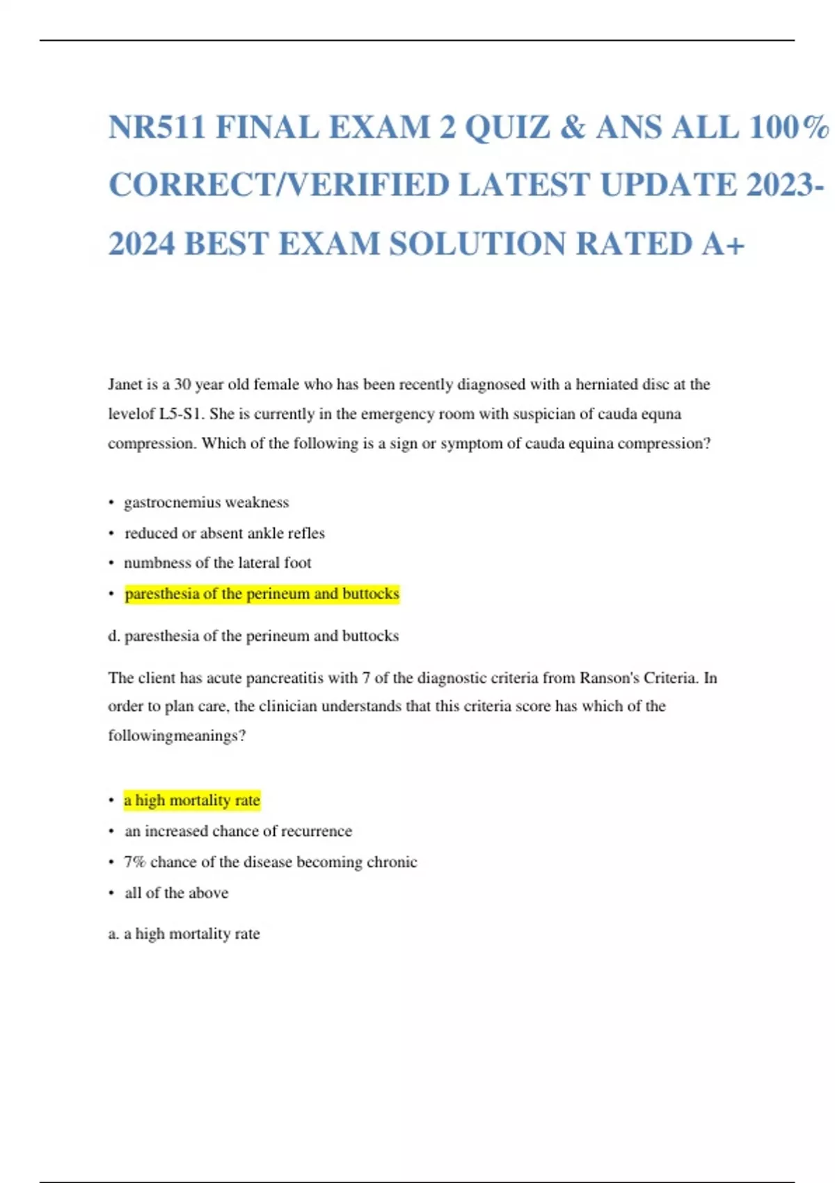NR511 FINAL EXAM 2 QUIZ & ANS ALL 100% CORRECTVERIFIED LATEST UPDATE BEST EXAM SOLUTION RATED A+