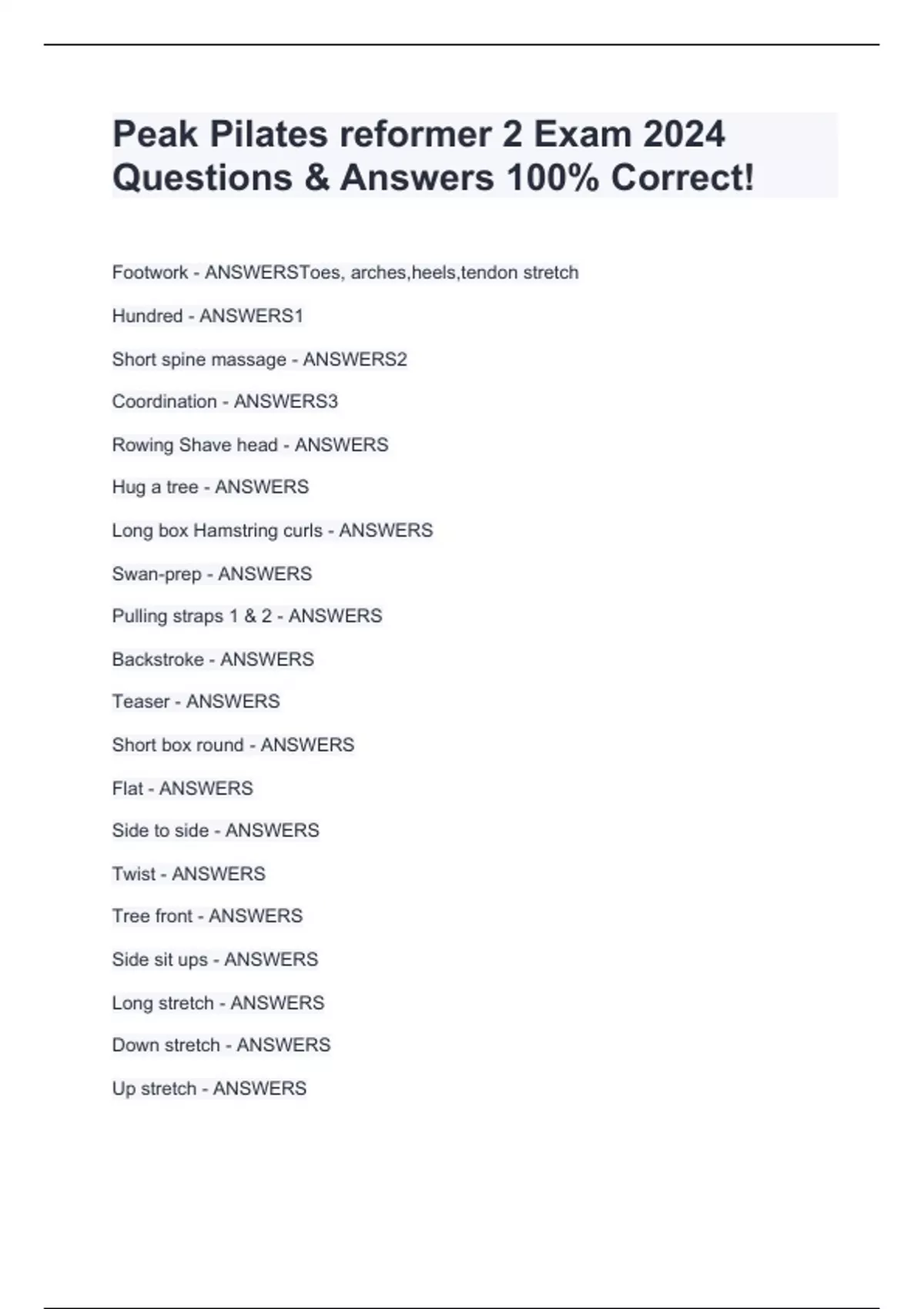 Peak Pilates reformer 2 Exam 2024 Questions & Answers 100% Correct!