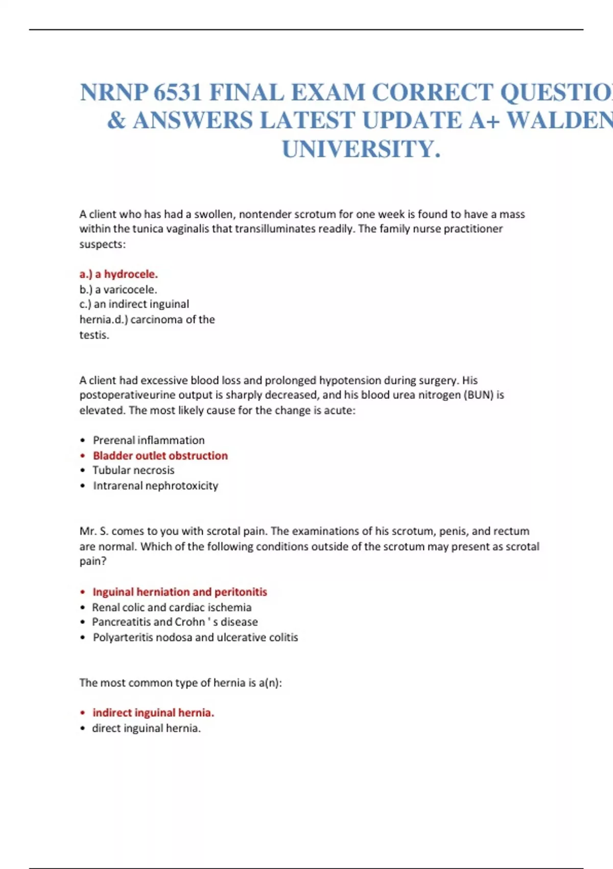 NRNP 6531 FINAL EXAM CORRECT QUESTIONS & ANSWERS LATEST UPDATE A+ WALDEN UNIVERSITY.