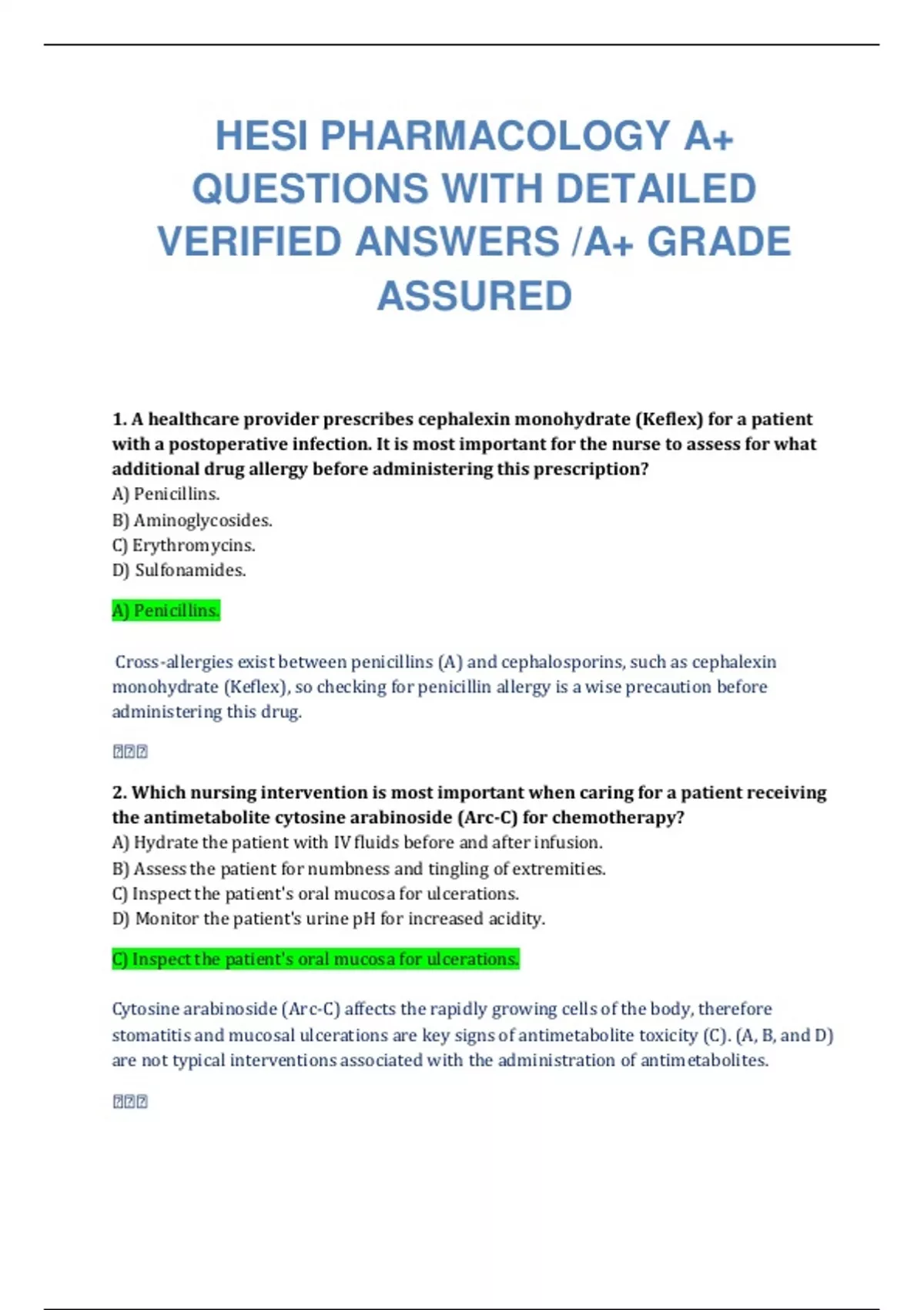 HESI PHARMACOLOGY A+ QUESTIONS WITH DETAILED VERIFIED ANSWERS A+ GRADE ASSURED
