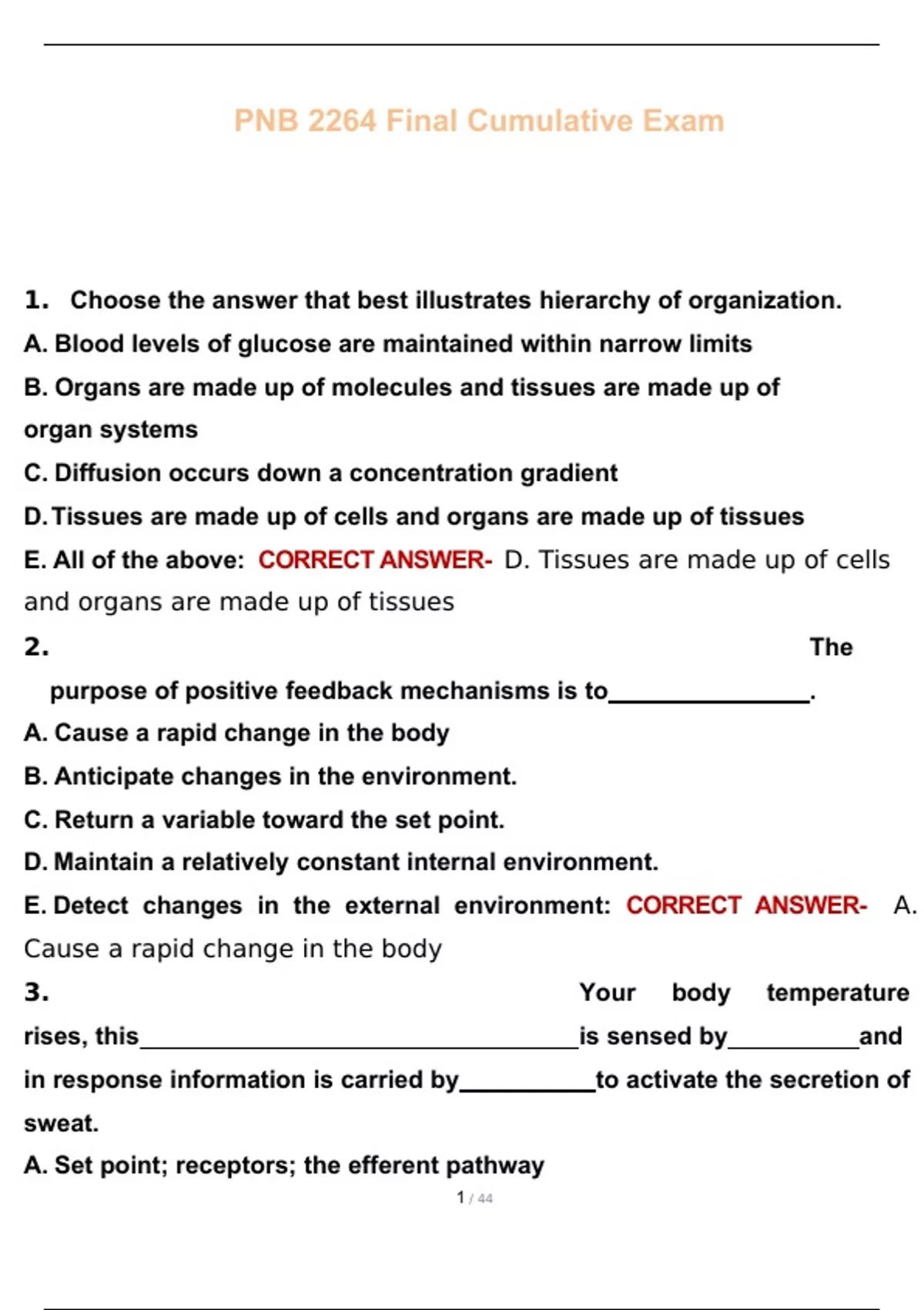PNB 2264 Final Cumulative Exam