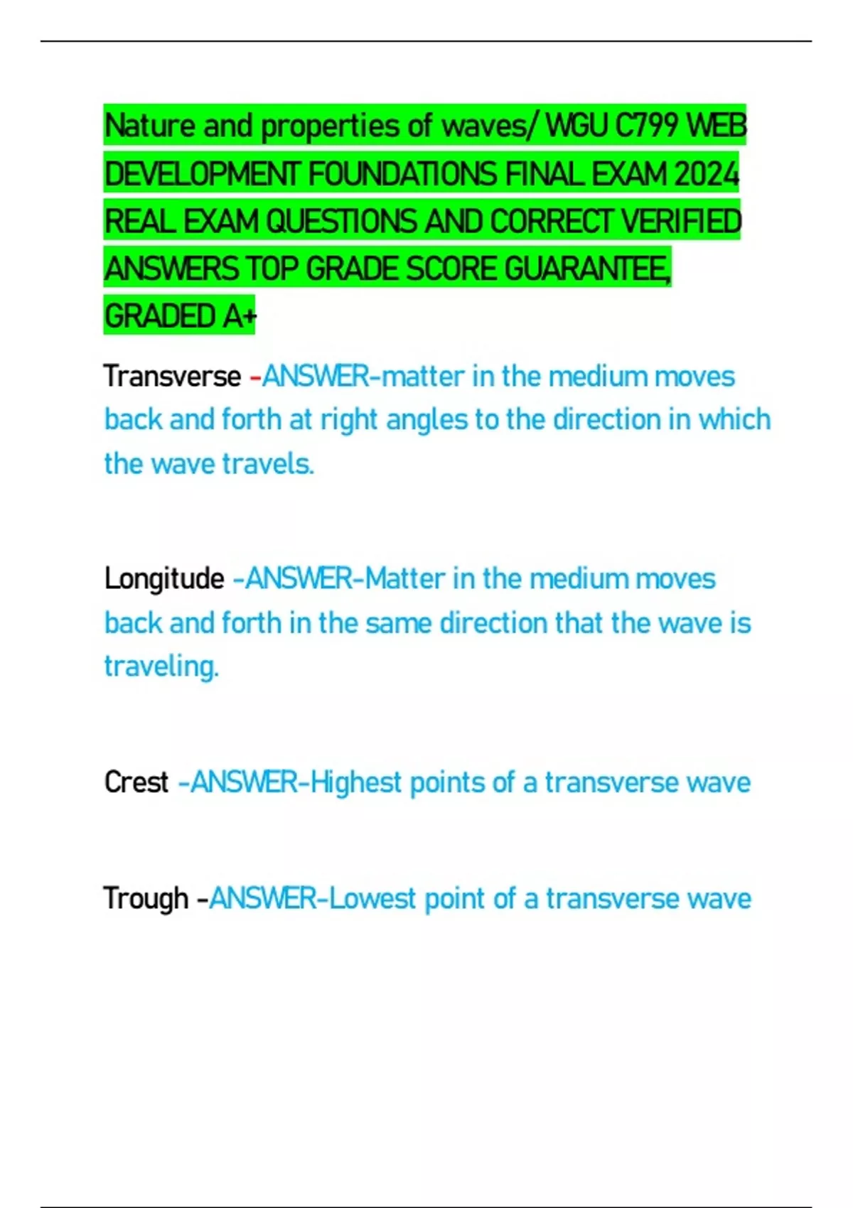 Nature and properties of waves/ WGU C799 WEB DEVELOPMENT FOUNDATIONS FINAL EXAM 2024 REAL EXAM QUESTIONS AND CORRECT VERIFIED ANSWERS TOP GRADE SCORE GUARANTEE, GRADED A+