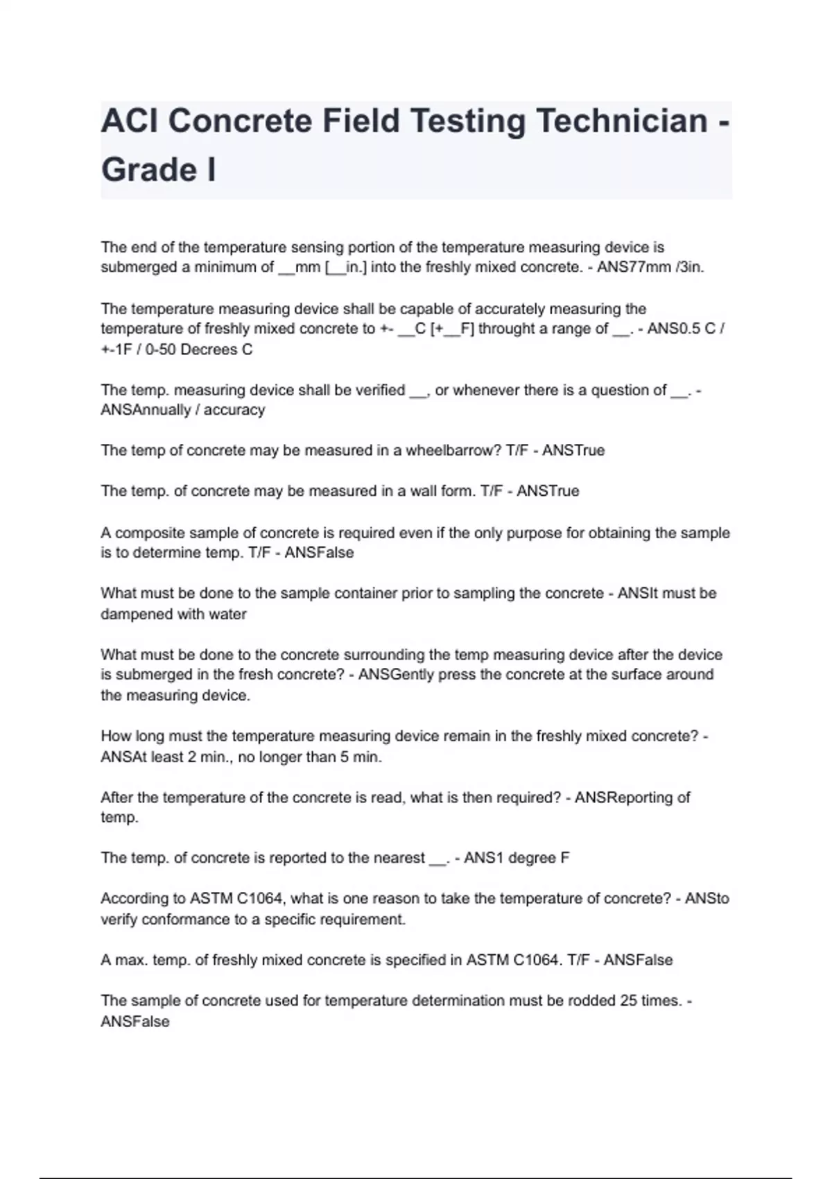 ACI Concrete Field Testing Technician - Grade I graded A+ 2024/2025