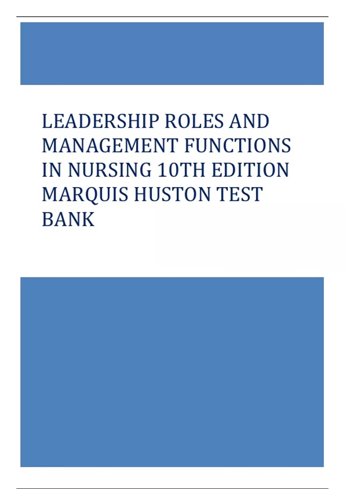 LEADERSHIP ROLES AND MANAGEMENT FUNCTIONS IN NURSING 10TH EDITION MARQUIS HUSTON TEST BANK LEADERSHIP ROLES AND MANAGEMENT FUNCTIONS IN NURSING 10TH EDITION MARQUIS HUSTON TEST BANK LEADERSHIP ROLES AND MANAGEMENT FUNCTIONS IN NURSING 10TH EDITION MARQUIS HUSTON TEST BANK