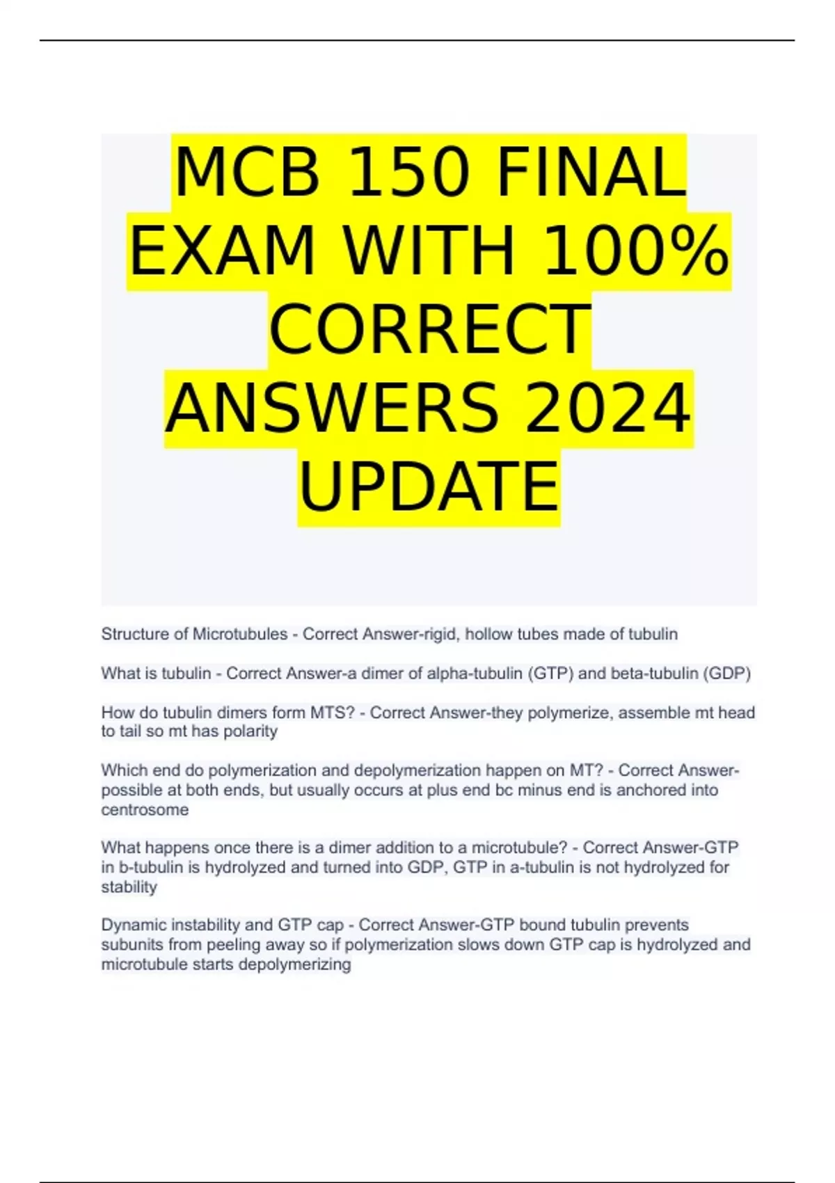 MCB 150 FINAL EXAM WITH 100% CORRECT ANSWERS 2024 UPDATE