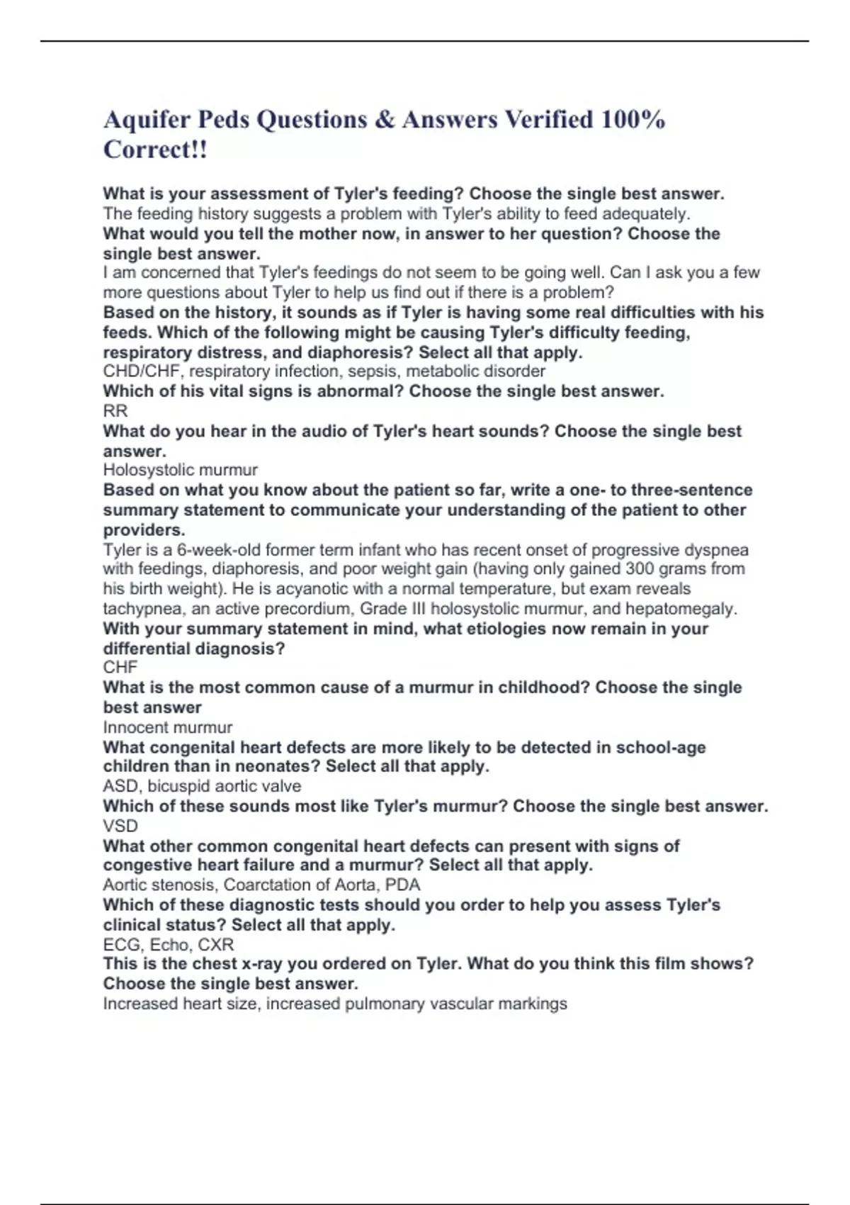 Aquifer Peds Questions & Answers Verified 100% Correct!!