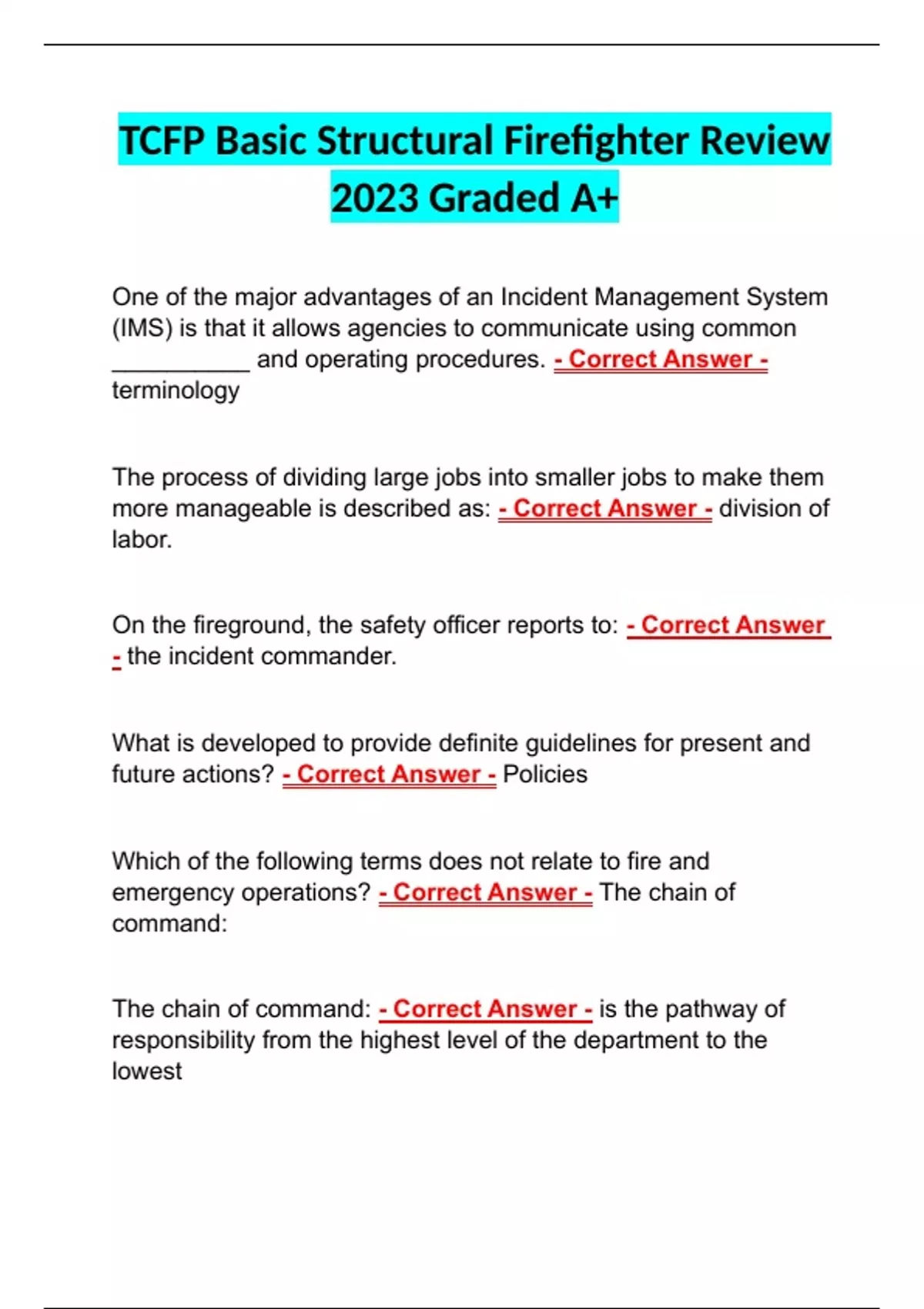 TCFP Basic Structural Firefighter Review 2023 Graded A+ TCFP Basic Structural Firefighter Review 2023 Graded A+ TCFP Basic Structural Firefighter Review 2023 Graded A+