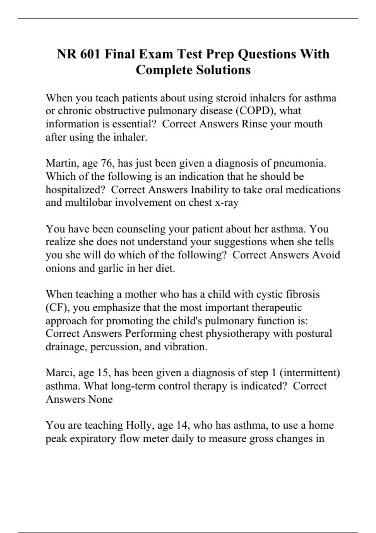 NR 601 Final Exam Test Prep Questions With Complete Solutions