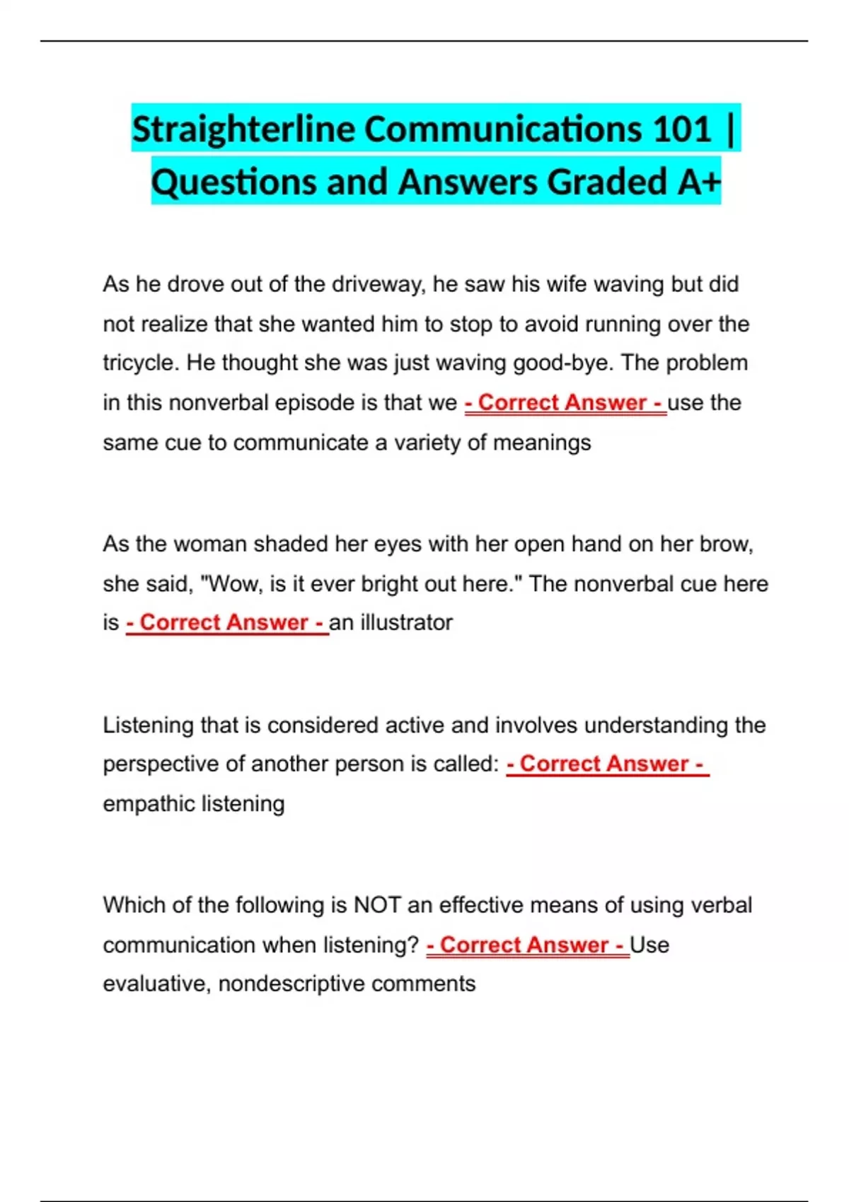 Straighterline Communications 101 | Questions and Answers Graded A+ Straighterline Communications 101 | Questions and Answers Graded A+ Straighterline Communications 101 | Questions and Answers Graded A+