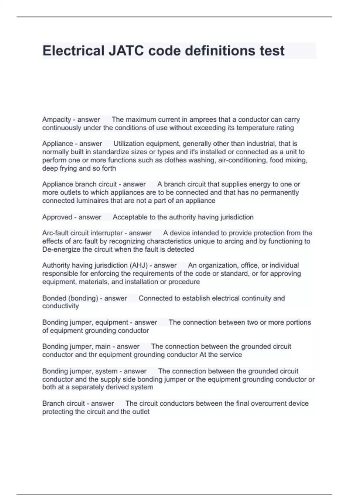 electrical jatc code definitions test
