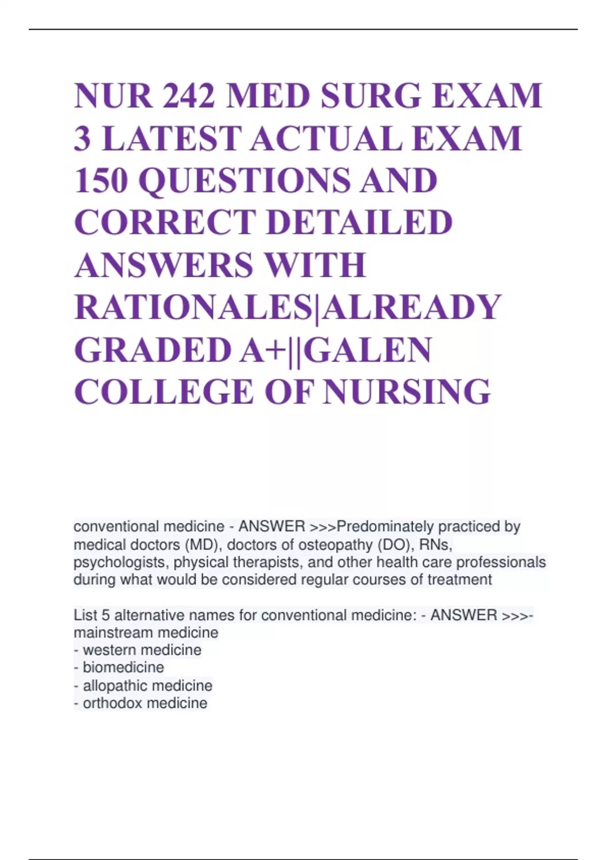 NUR 242 MED SURG EXAM 3 LATEST ACTUAL EXAM 150 QUESTIONS AND CORRECT DETAILED ANSWERS WITH RATIONALES|ALREADY GRADED A+||GALEN COLLEGE OF NURSING
