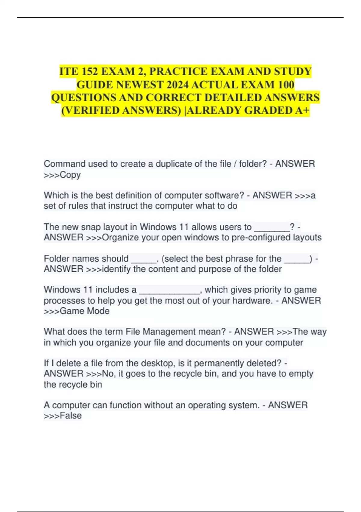 ITE 152 EXAM 2, PRACTICE EXAM AND STUDY GUIDE NEWEST 2024 ACTUAL EXAM 100 QUESTIONS AND CORRECT DETAILED ANSWERS (VERIFIED ANSWERS) |ALREADY GRADED A+