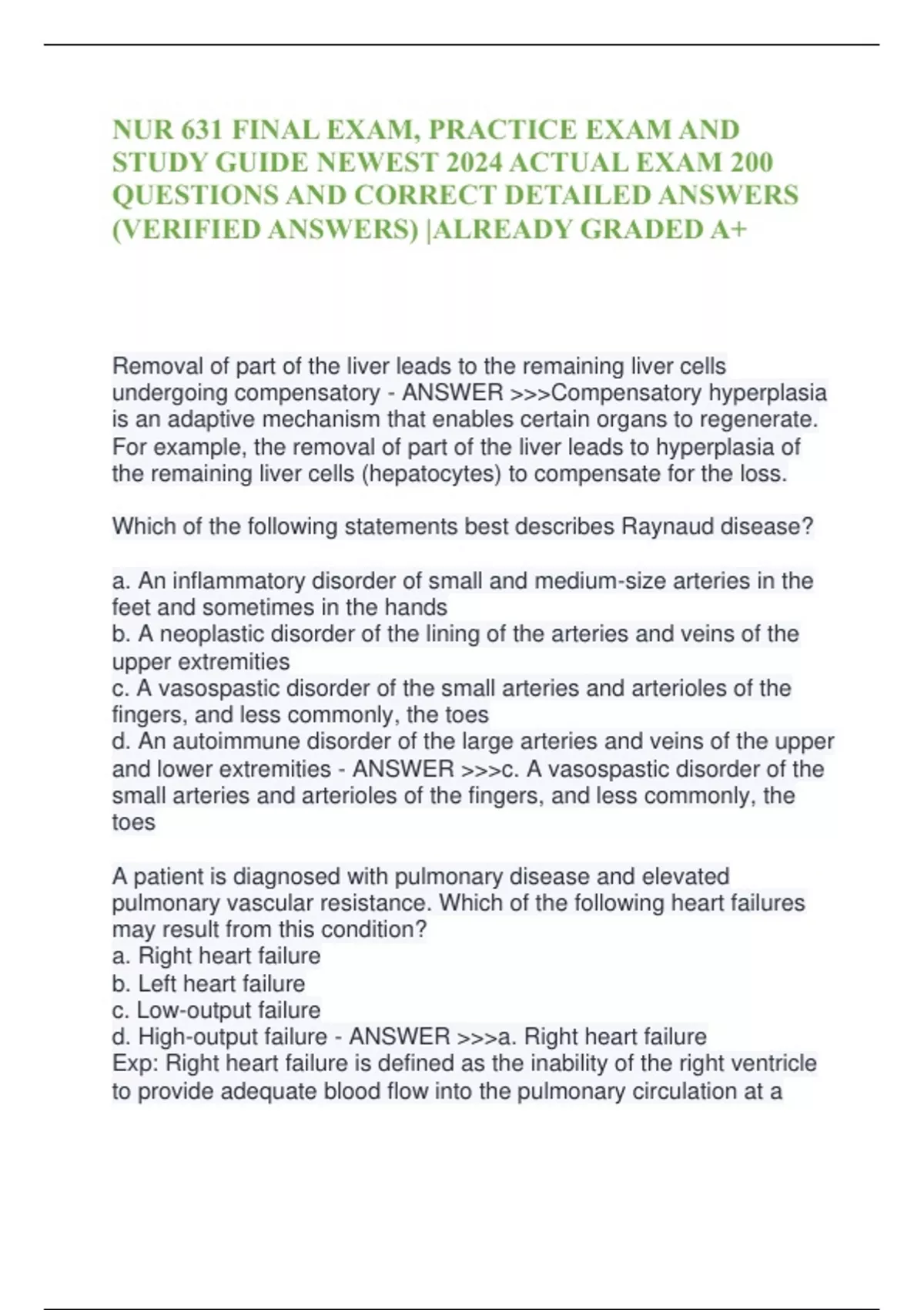 NUR 631 FINAL EXAM, PRACTICE EXAM AND STUDY GUIDE NEWEST 2024 ACTUAL EXAM 200 QUESTIONS AND CORRECT DETAILED ANSWERS (VERIFIED ANSWERS) |ALREADY GRADED A+
