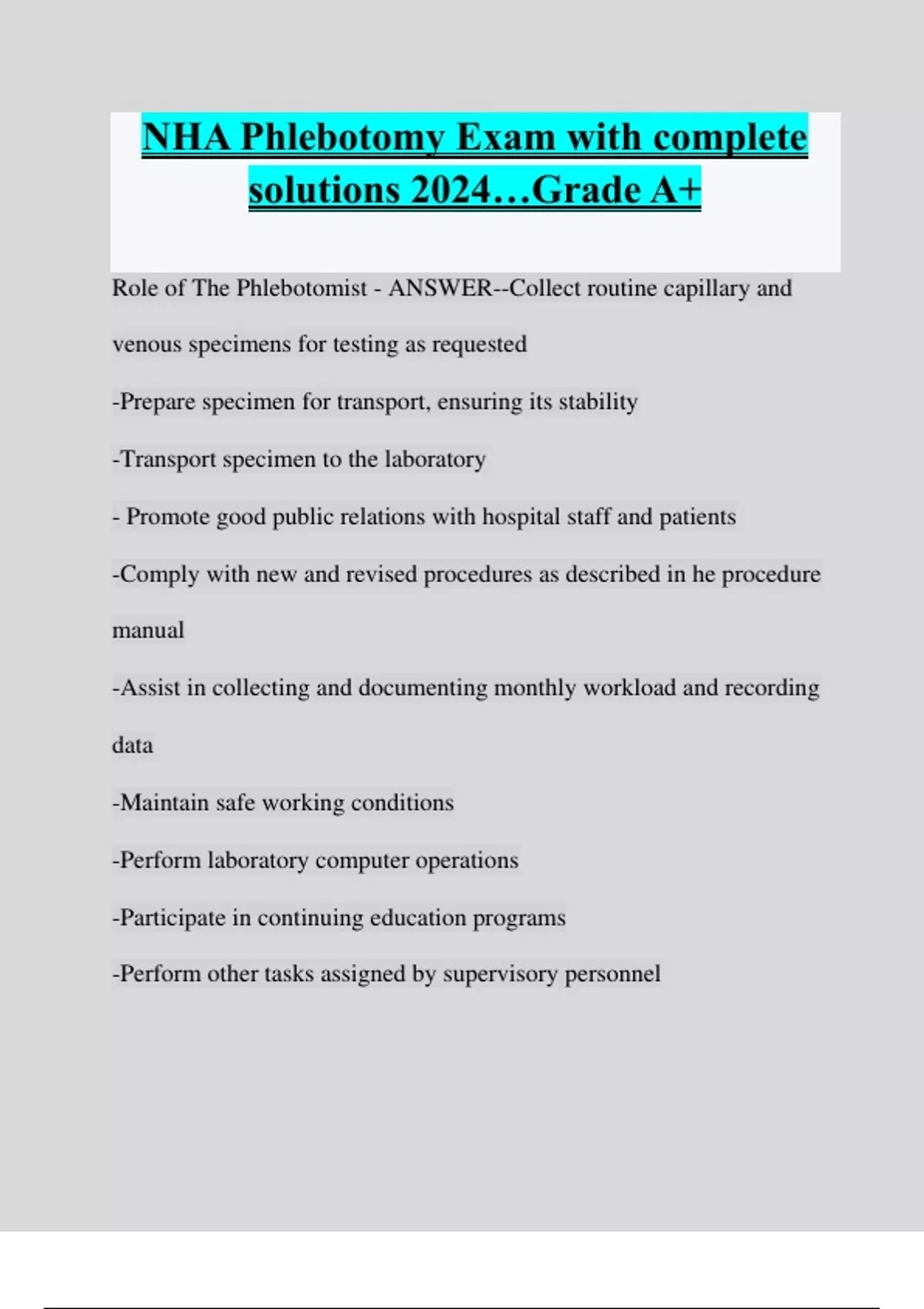NHA Phlebotomy Exam with complete solutions 2024…Grade A+