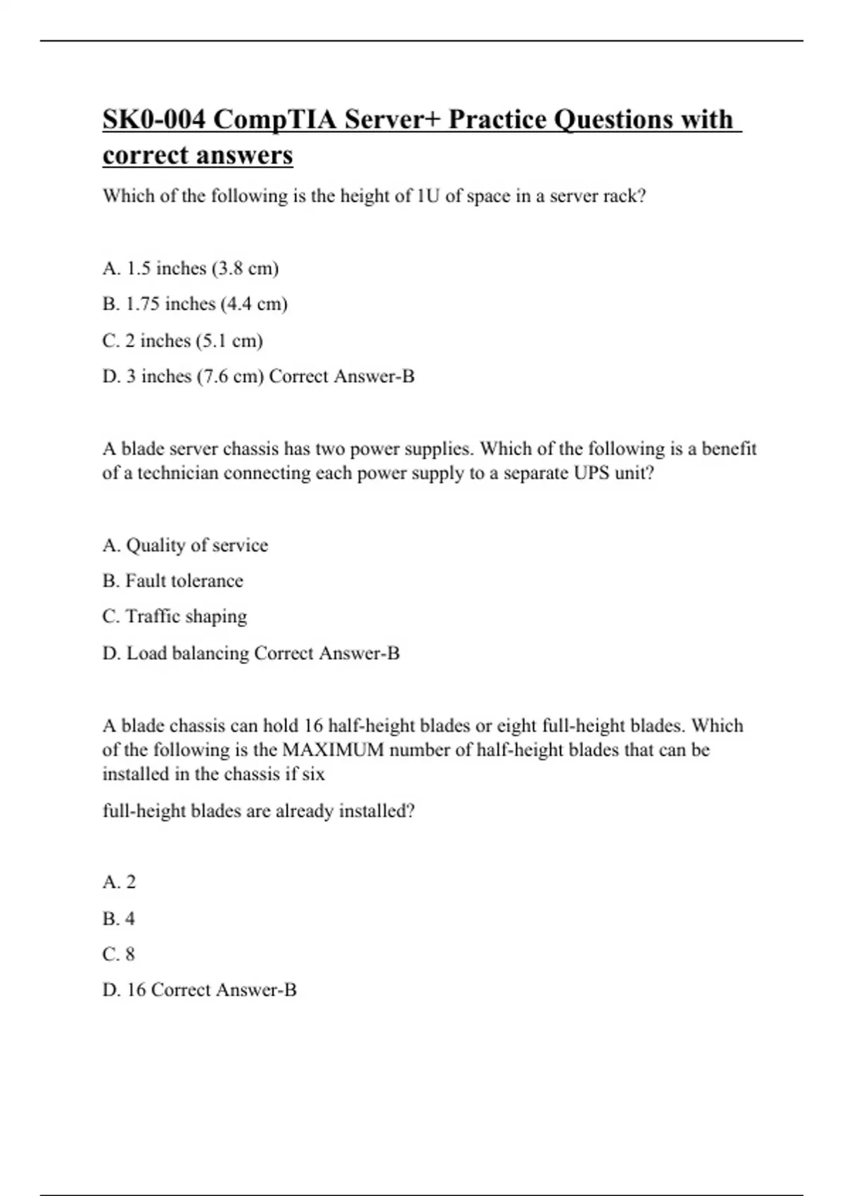 SK0-004 CompTIA Server+ Practice Questions with correct answers