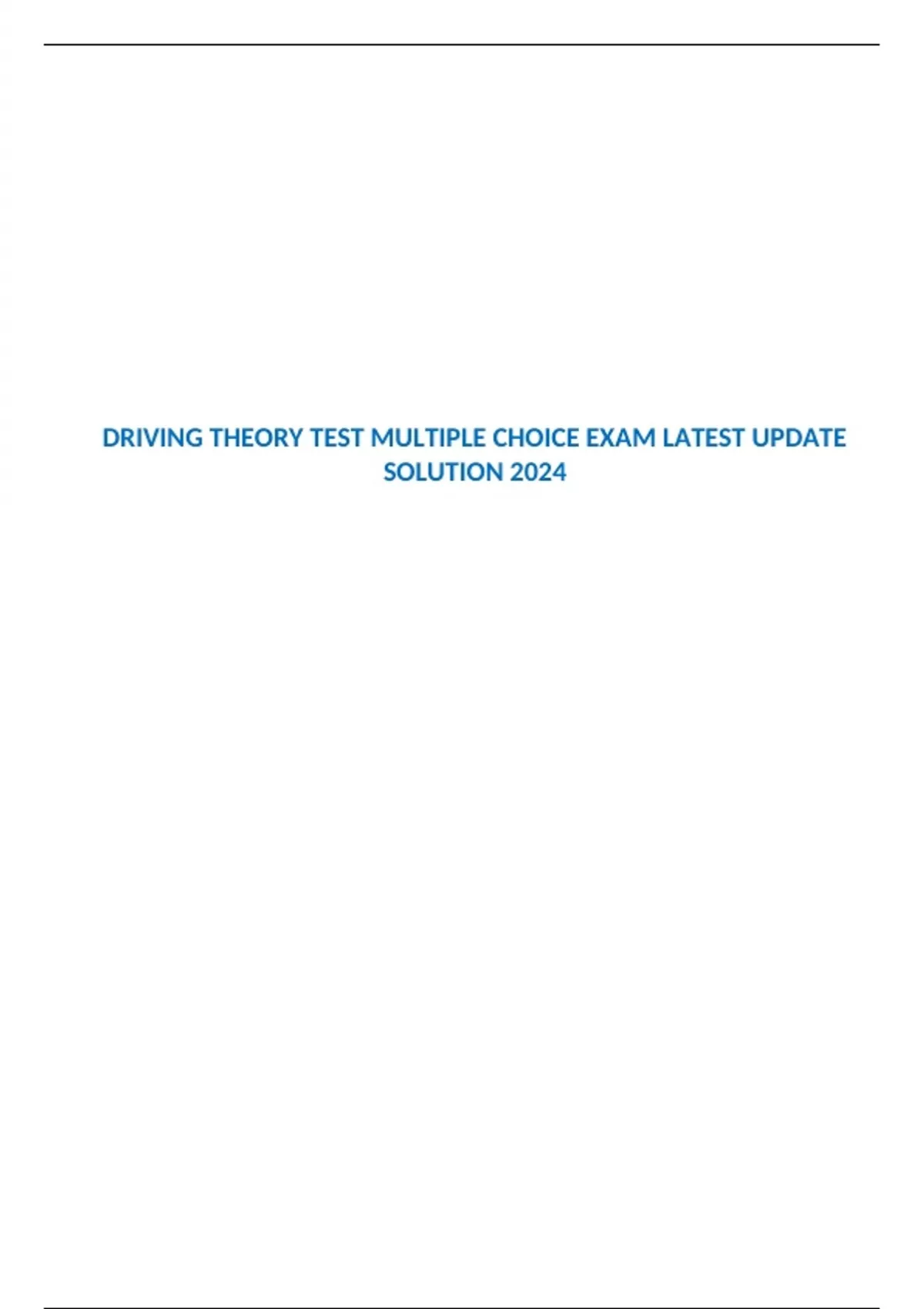 DRIVING THEORY TEST MULTIPLE CHOICE EXAM LATEST UPDATE SOLUTION 2024