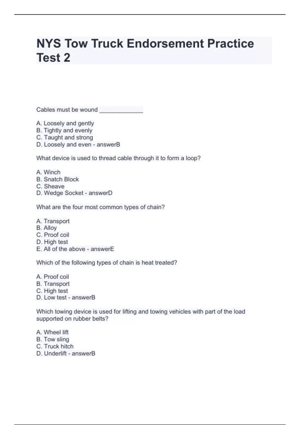 NYS Tow Truck Endorsement Practice Test 2 Questions with Correct Answers 2024