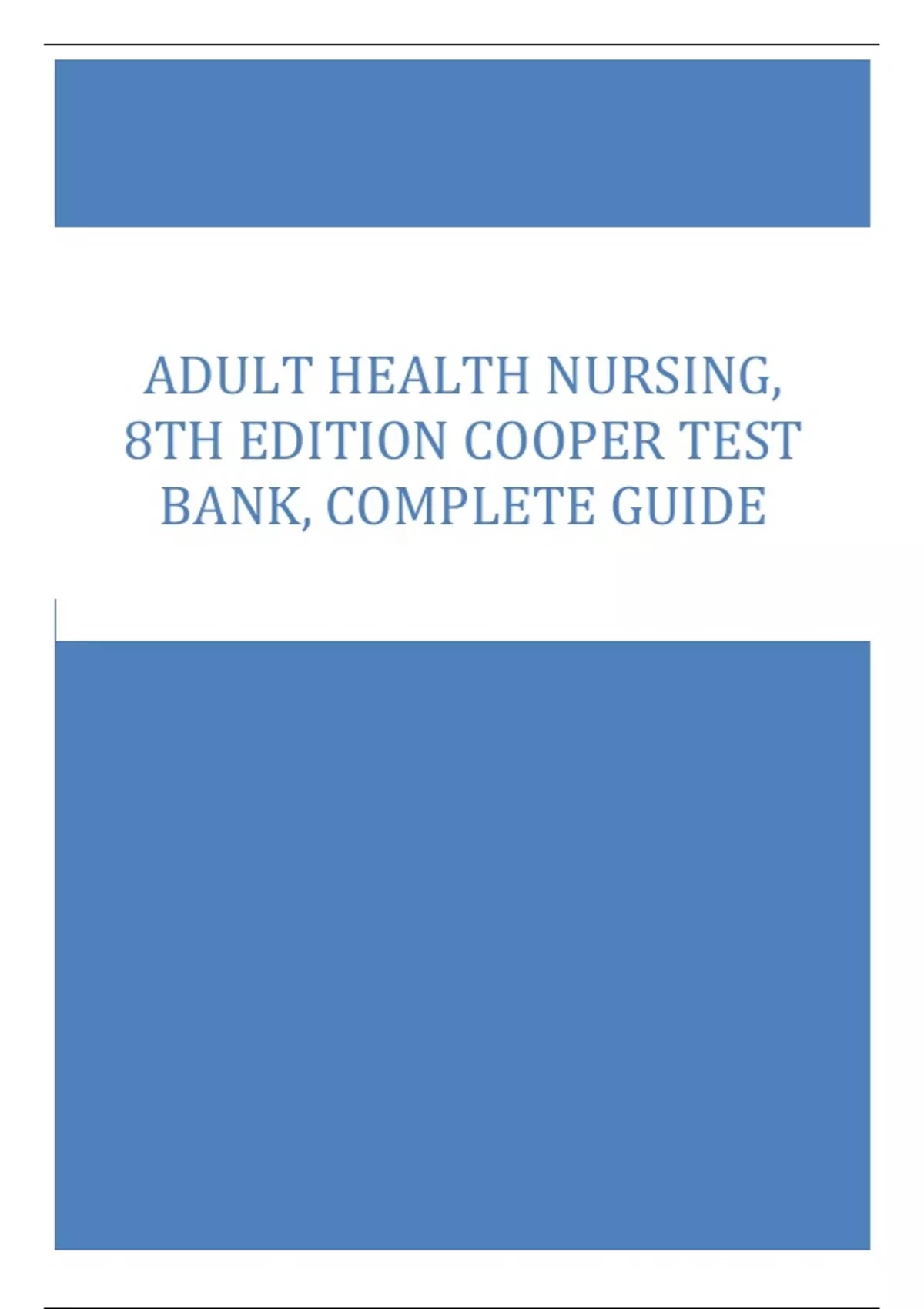 ADULT HEALTH NURSING, 8TH EDITION COOPER TEST BANK, COMPLETE GUIDE