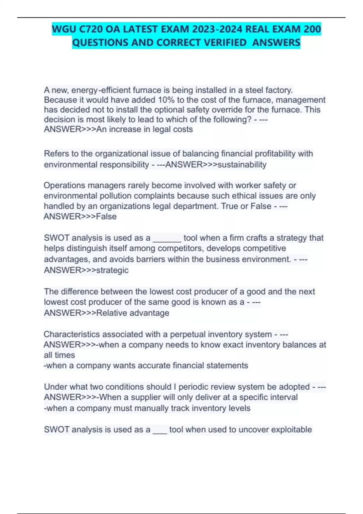 wgu c720 oa latest exam real exam 200 q