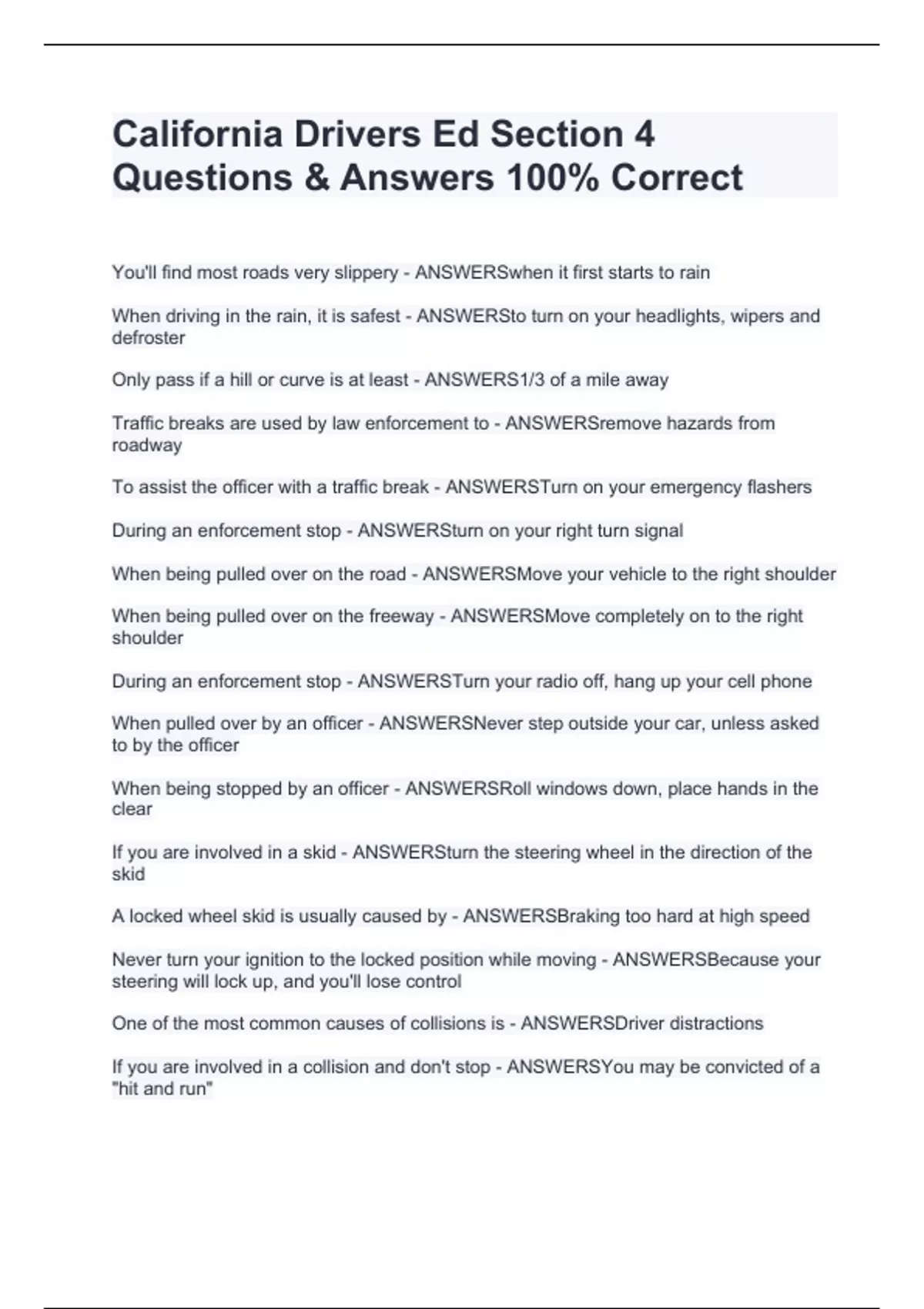 California Drivers Ed Section 4 Questions & Answers 100% Correct