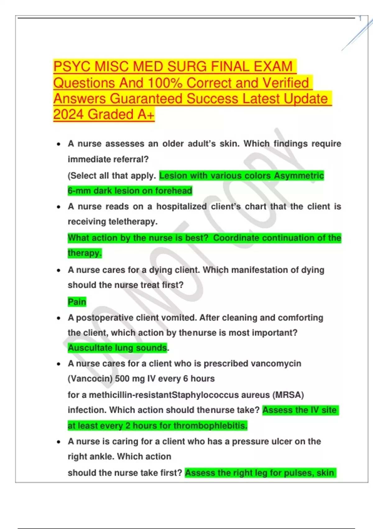 PSYC MISC MED SURG FINAL EXAM Questions And 100% Correct and Verified Answers Guaranteed