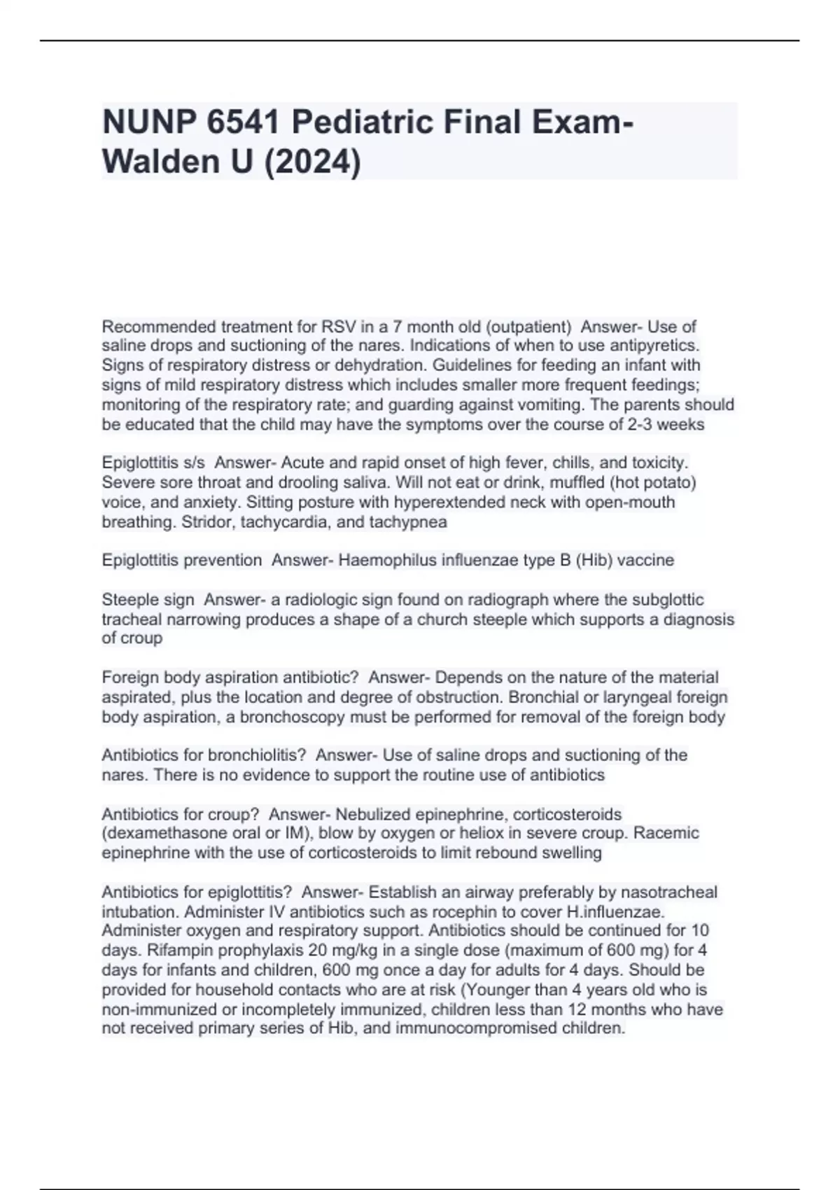 NUNP 6541 Pediatric Final Exam-Walden U (2024)