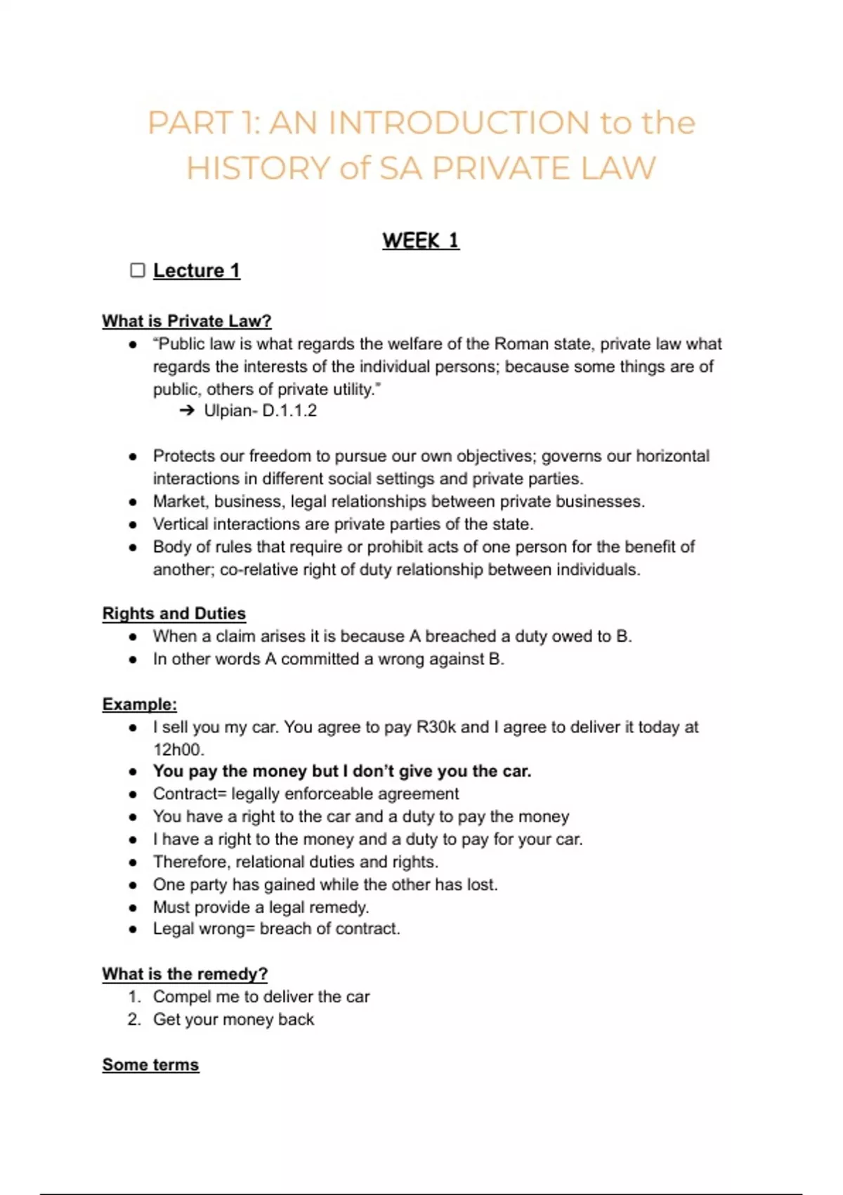 , Lecture 2: Introduction to the history of S.A Private law-