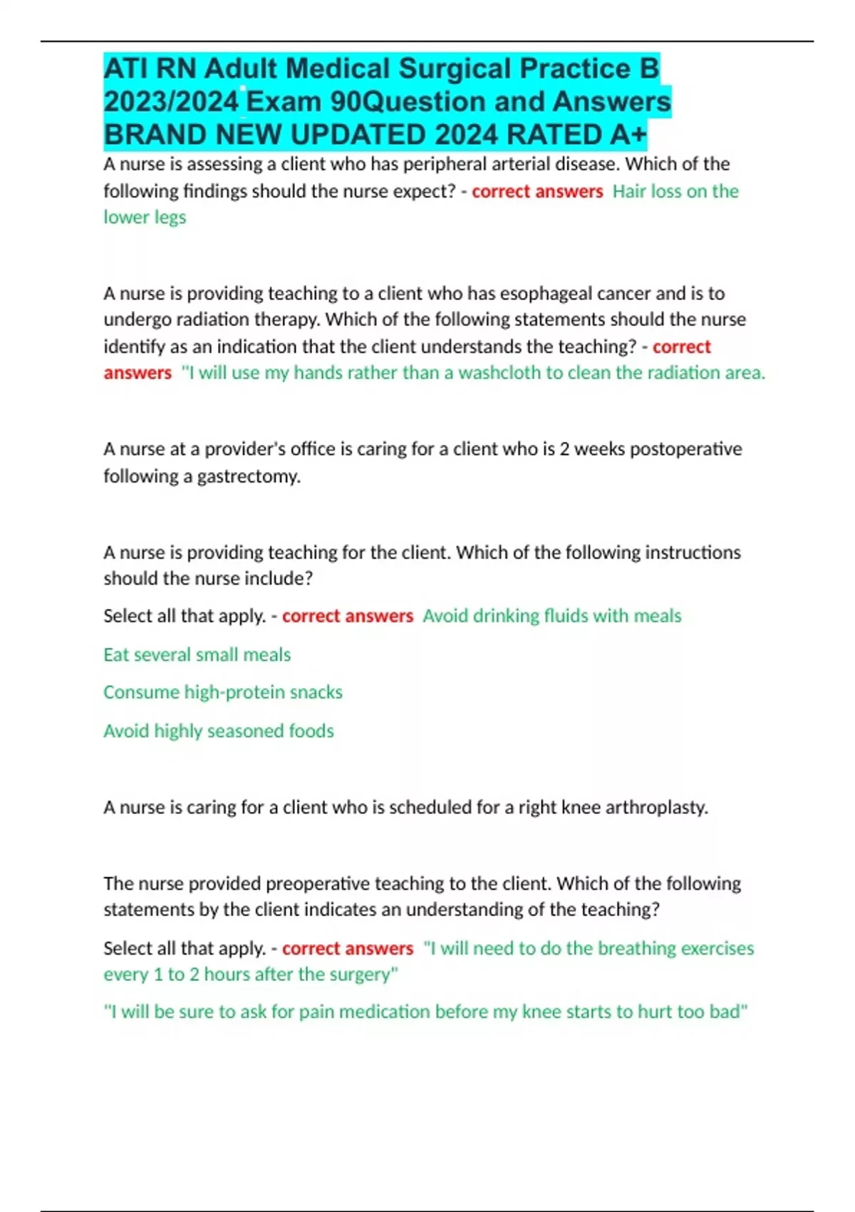 ATI RN Adult Medical Surgical Practice B 2023/2024 Exam 90Question and Answers BRAND NEW UPDATED 2024 RATED A+