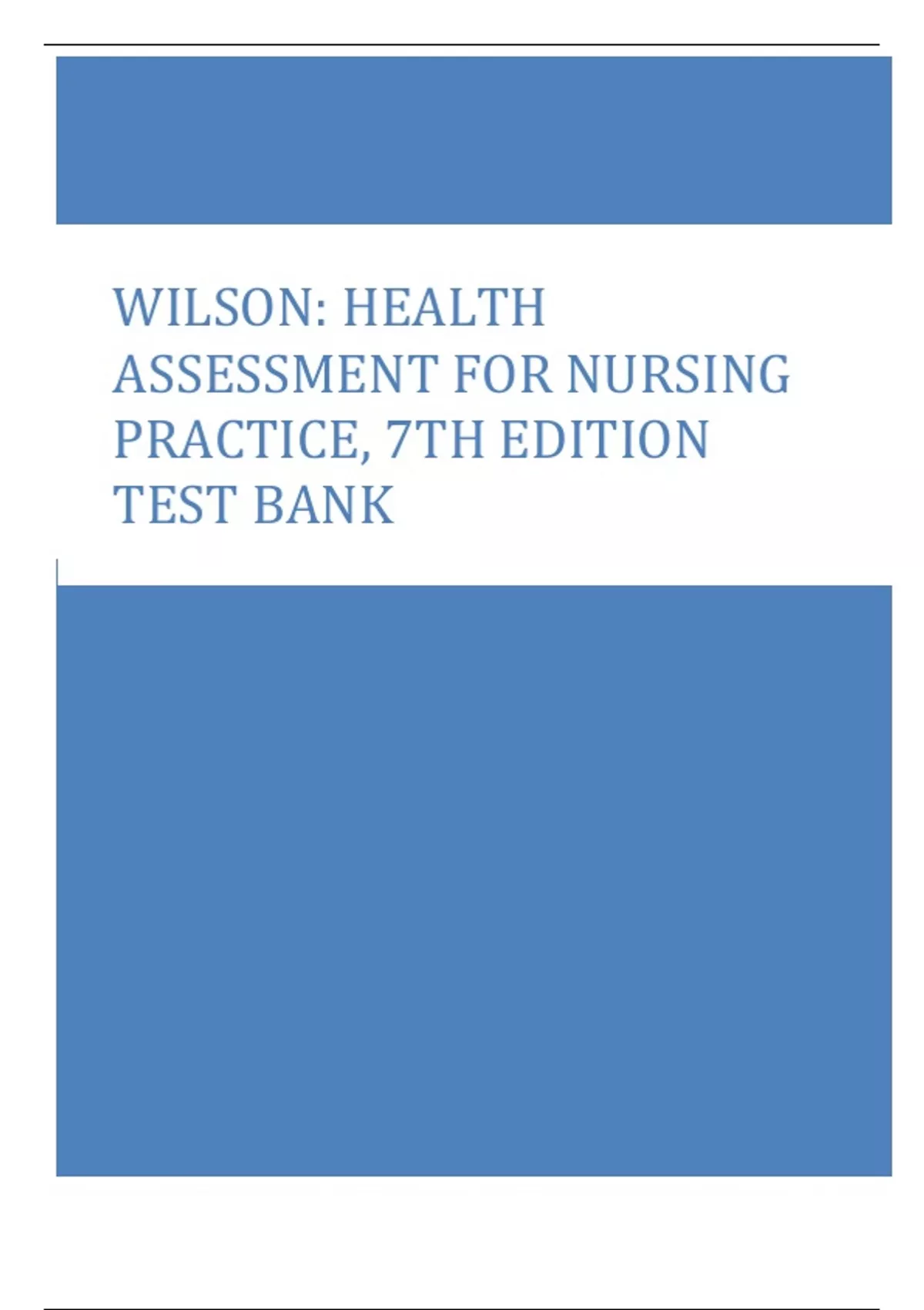 WILSON: HEALTH ASSESSMENT FOR NURSING PRACTICE, 7TH EDITION TEST BANK WILSON: HEALTH ASSESSMENT FOR NURSING PRACTICE, 7TH EDITION TEST BANK WILSON: HEALTH ASSESSMENT FOR NURSING PRACTICE, 7TH EDITION TEST BANK