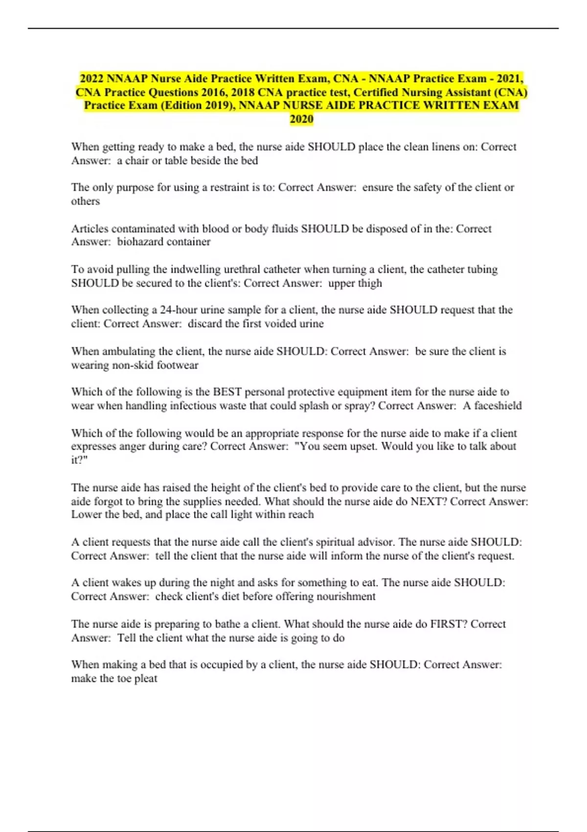 2022 NNAAP Nurse Aide Practice Written Exam, CNA - NNAAP Practice Exam - 2021, CNA Practice Questions 2016, 2018 CNA practice test, Certified Nursing Assistant (CNA) Practice Exam (Edition 2019), NNAAP NURSE AIDE PRACTICE WRITTEN EXAM 2020