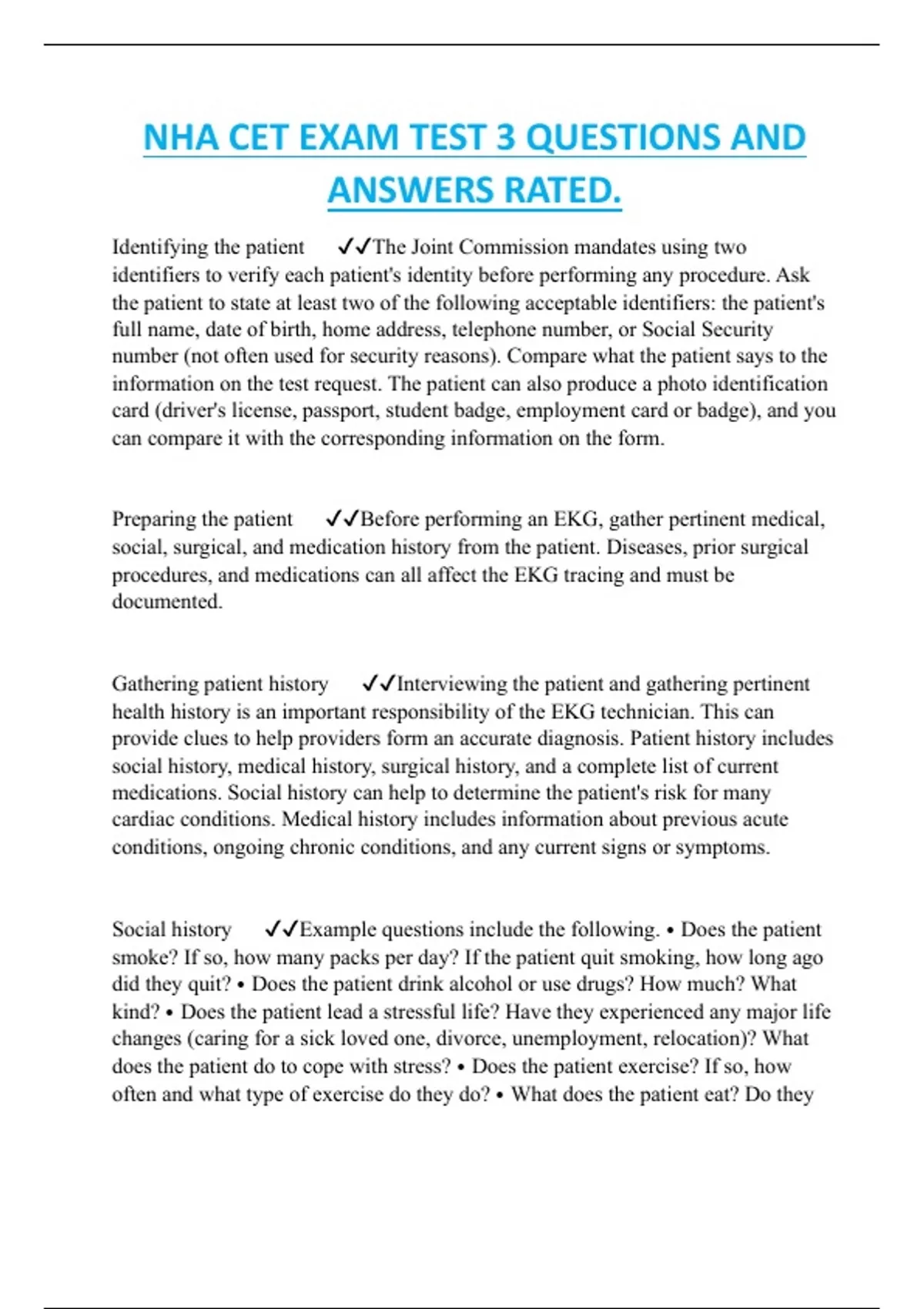 NHA CET EXAM TEST 3 QUESTIONS AND ANSWERS RATED