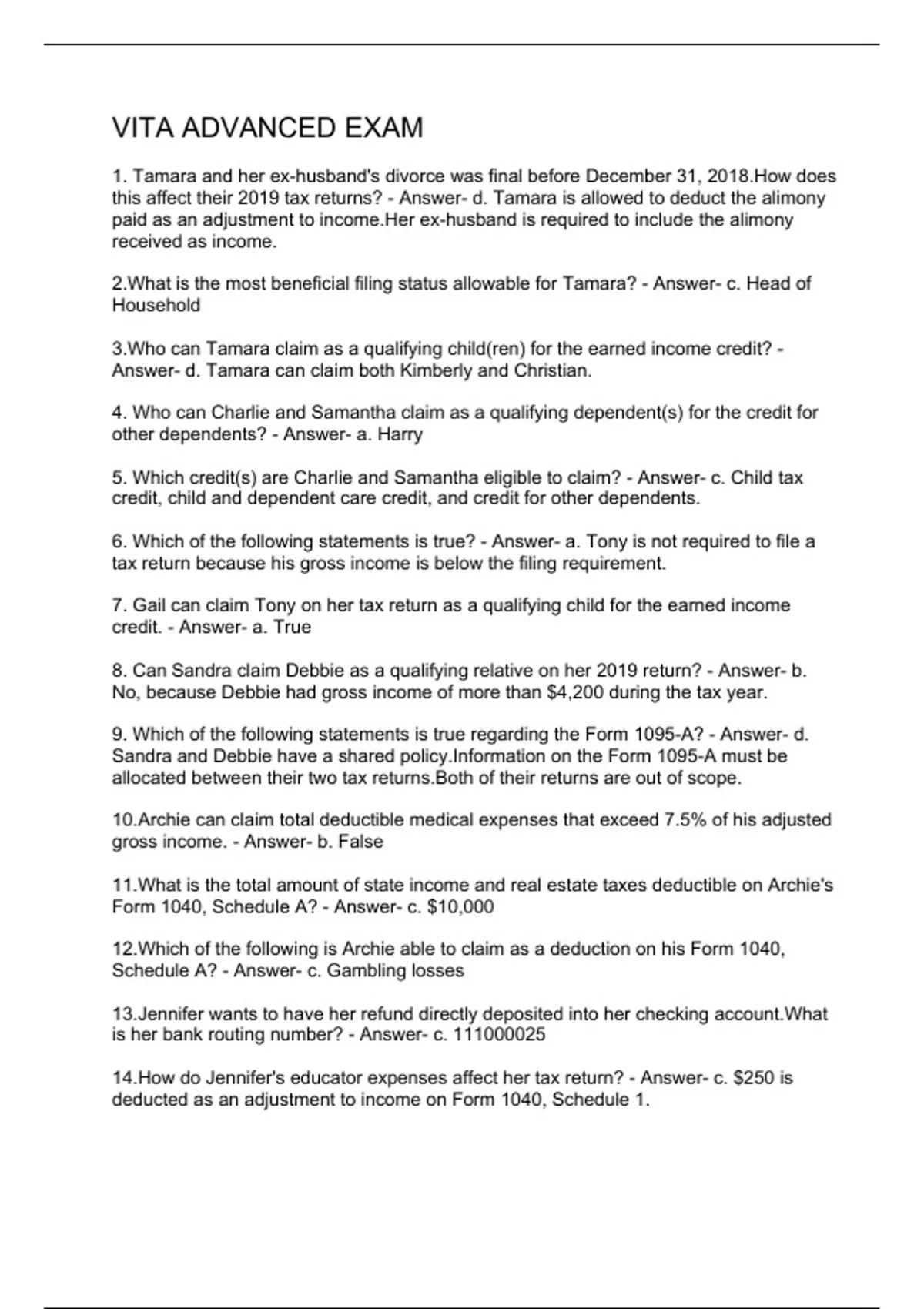 VITA ADVANCED EXAM