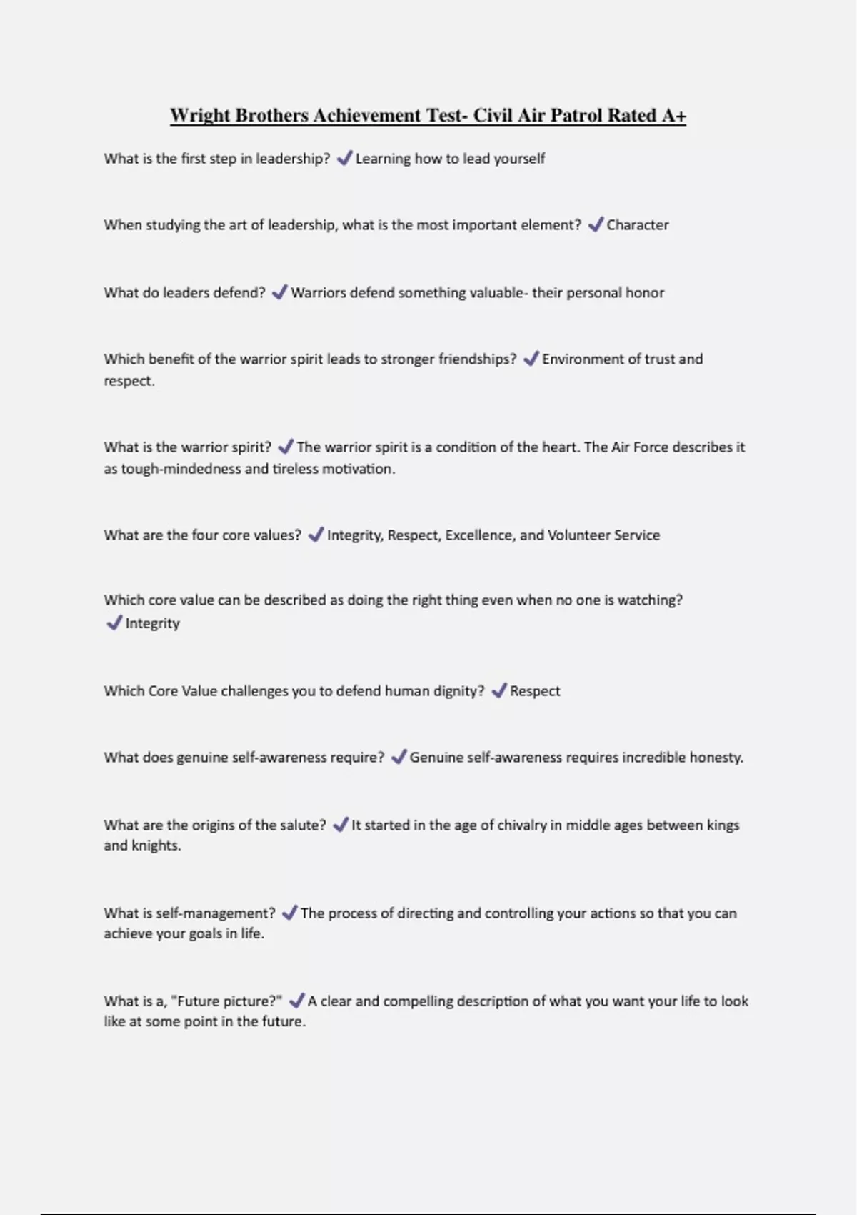 Wright Brothers Achievement Test- Civil Air Patrol Rated A+