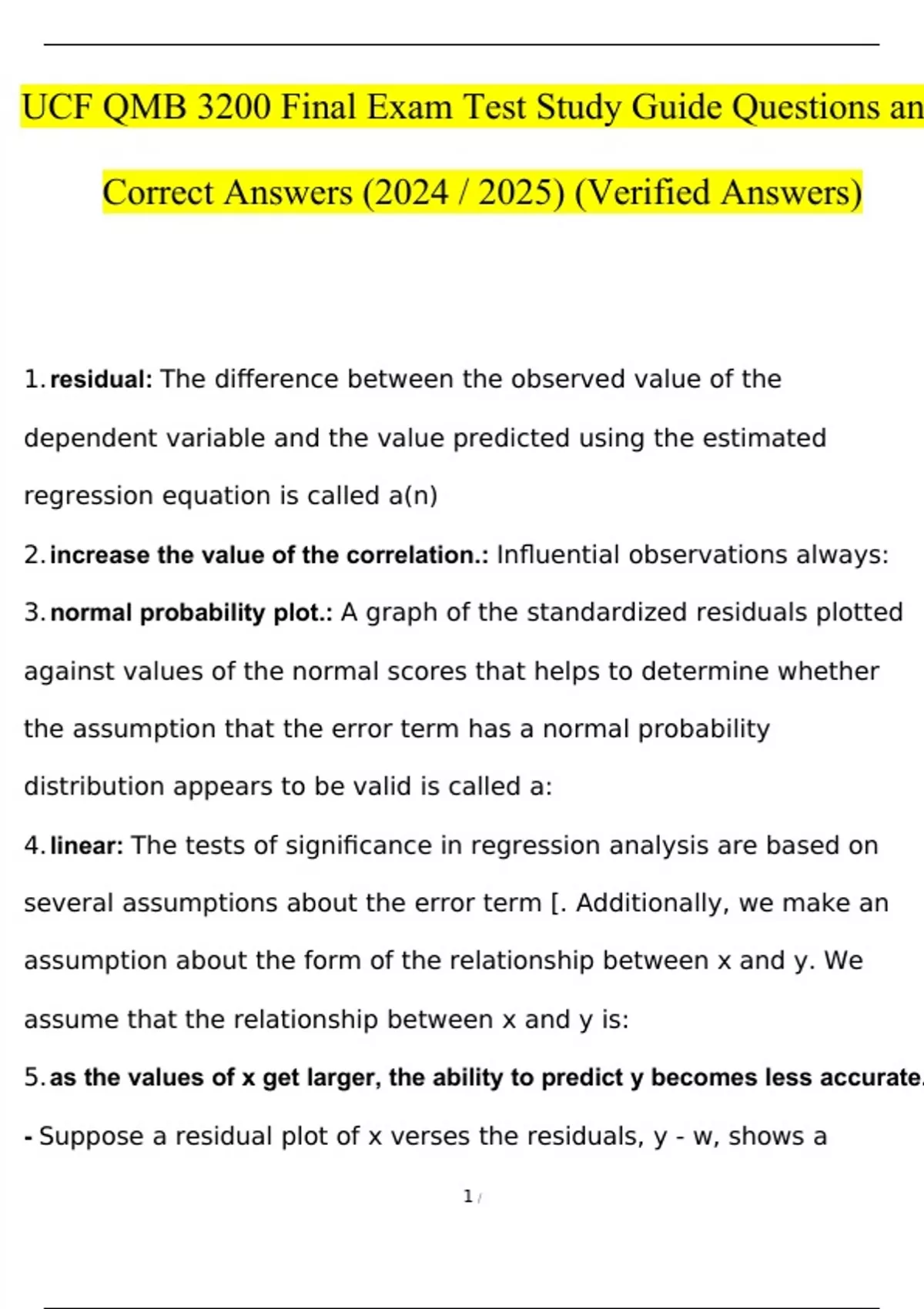 UCF QMB 3200 Final Exam Test Study Guide Questions and Answers (2024 / 2025) (Verified Answers)