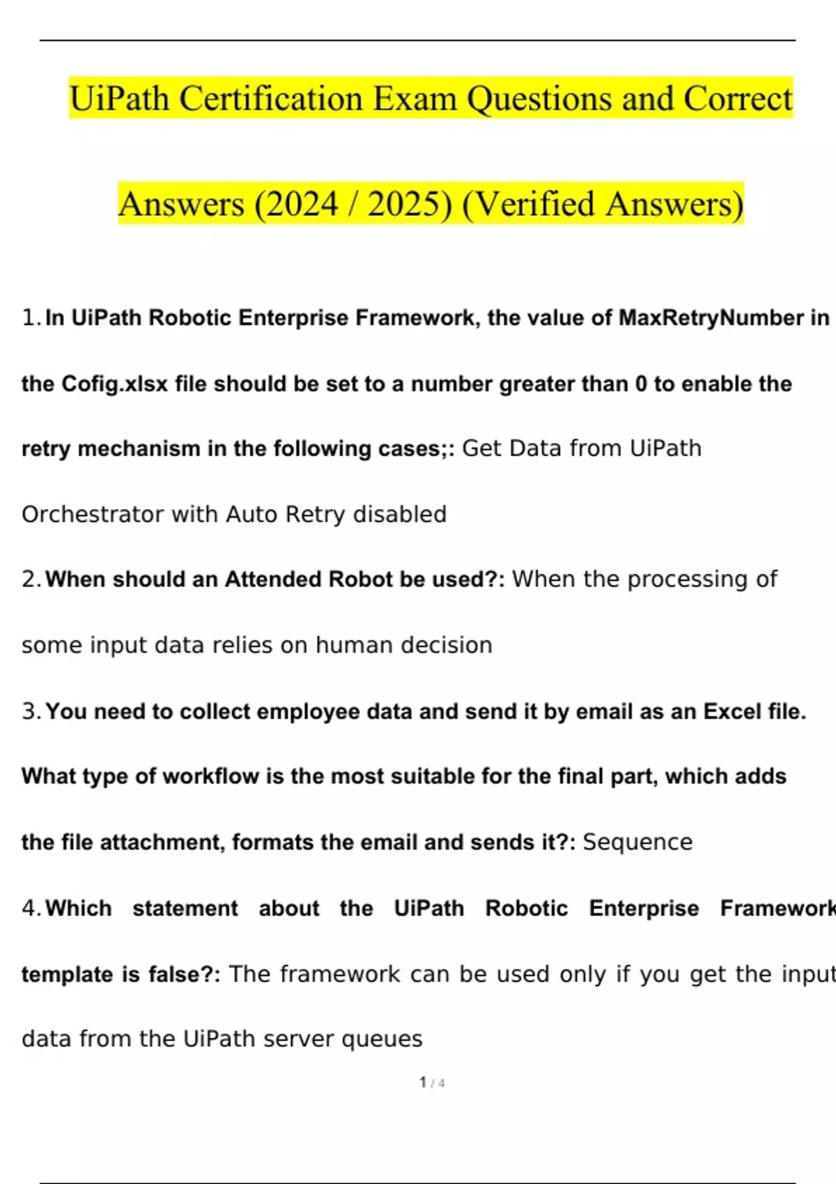 UiPath Certification Exam Questions and Answers (2024 / 2025) (Verified Answers)