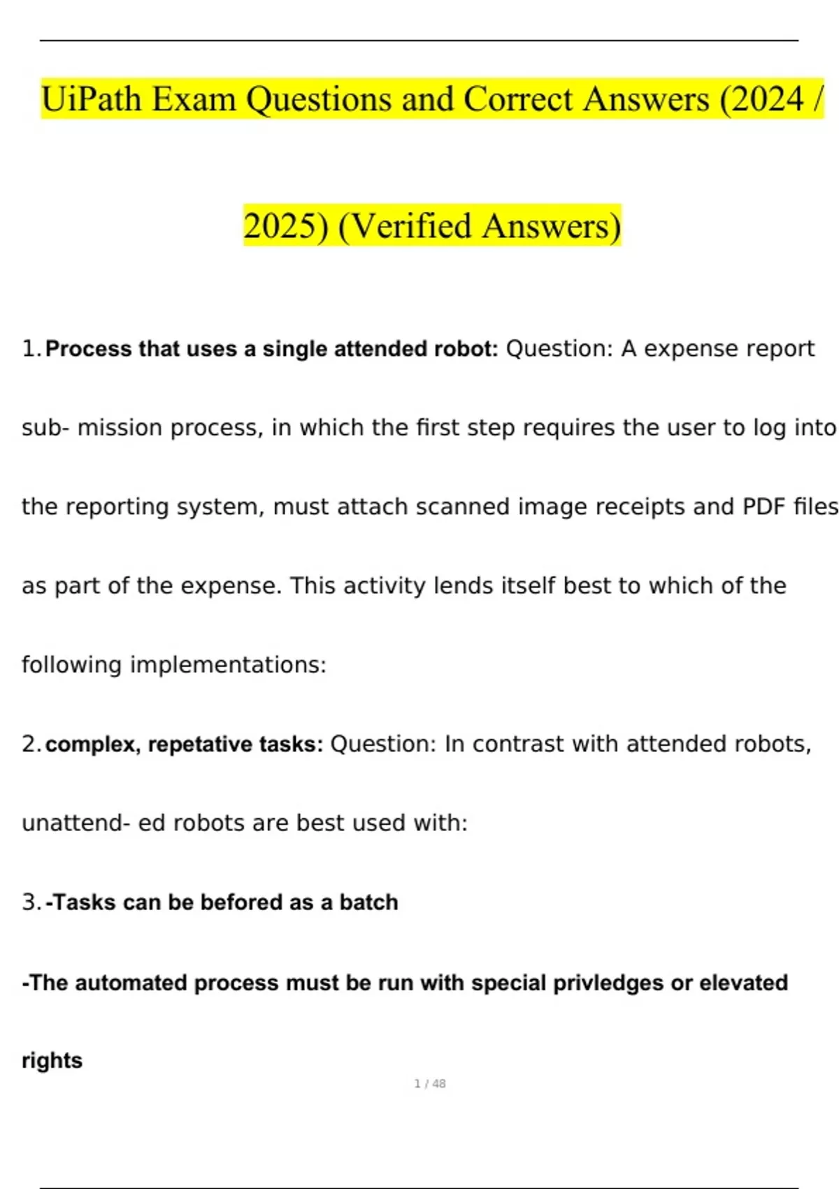 UIPath Exam Questions and Answers Latest 2024/2025 Graded A+ | 100% Correct