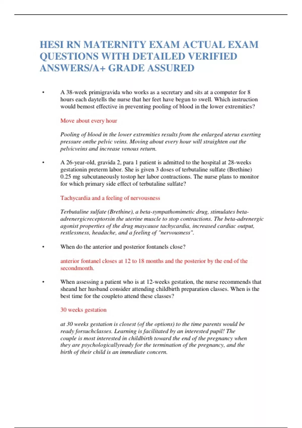 HESI RN MATERNITY EXAM ACTUAL EXAM QUESTIONS WITH DETAILED VERIFIED ANSWERSA+ GRADE ASSURED