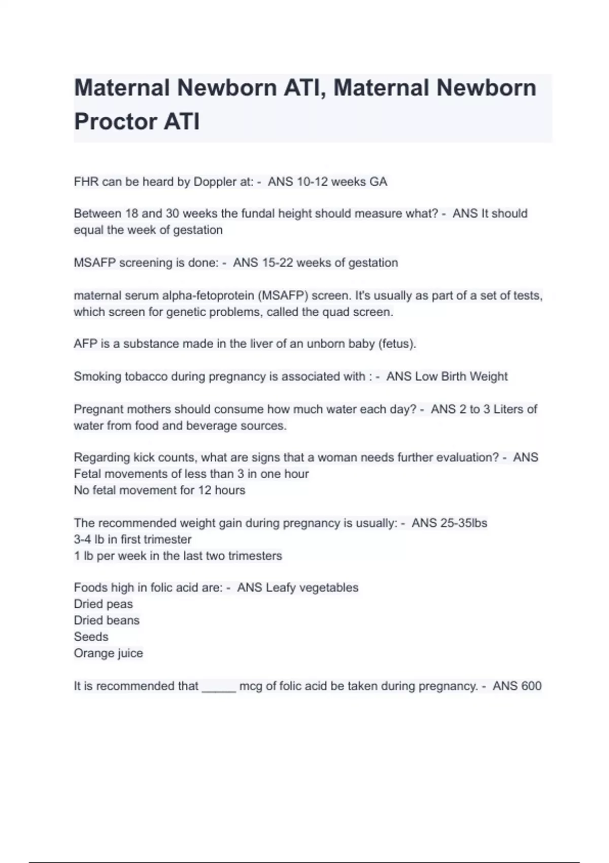 Maternal Newborn ATI, Maternal Newborn Proctor ATI Questions And Answers 2024