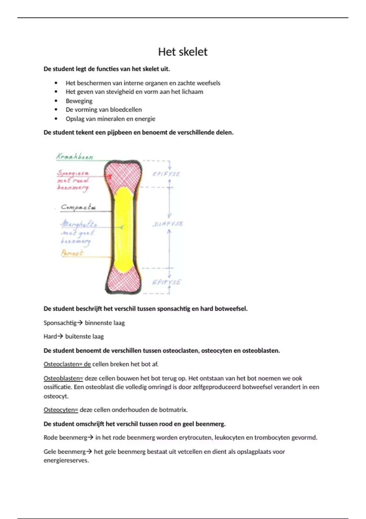 Het is een samenvatting van het hoofdstuk: Het skelet, 1ste module graduaat Verpleegkunde